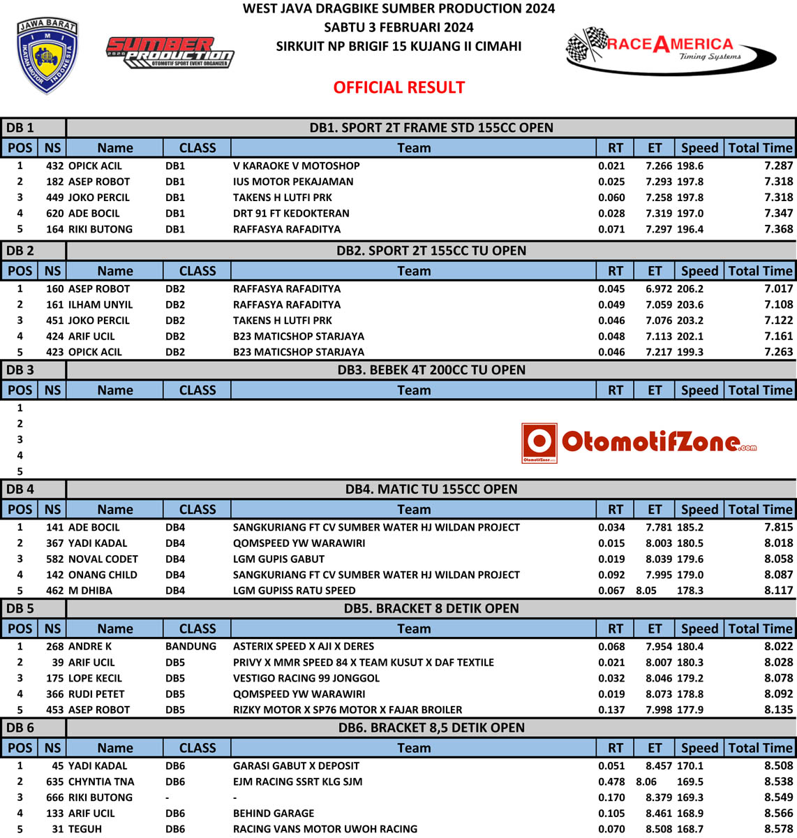 Penasaran, ini hasil lombanya yang digelar Sabtu, 3 Februari 2024 di sirkuit semi Permanen Brigif 15 Kujang II Kota Cimahi Jawa Barat.