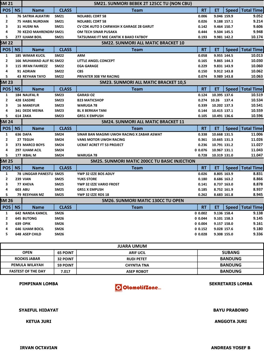 Selamat untuk para juara, maju terus drag bike Jabar.