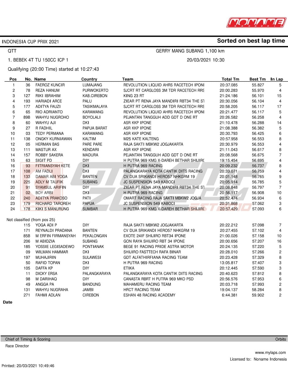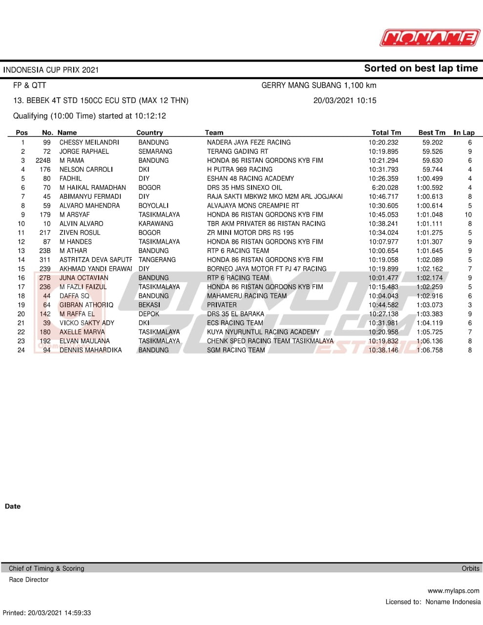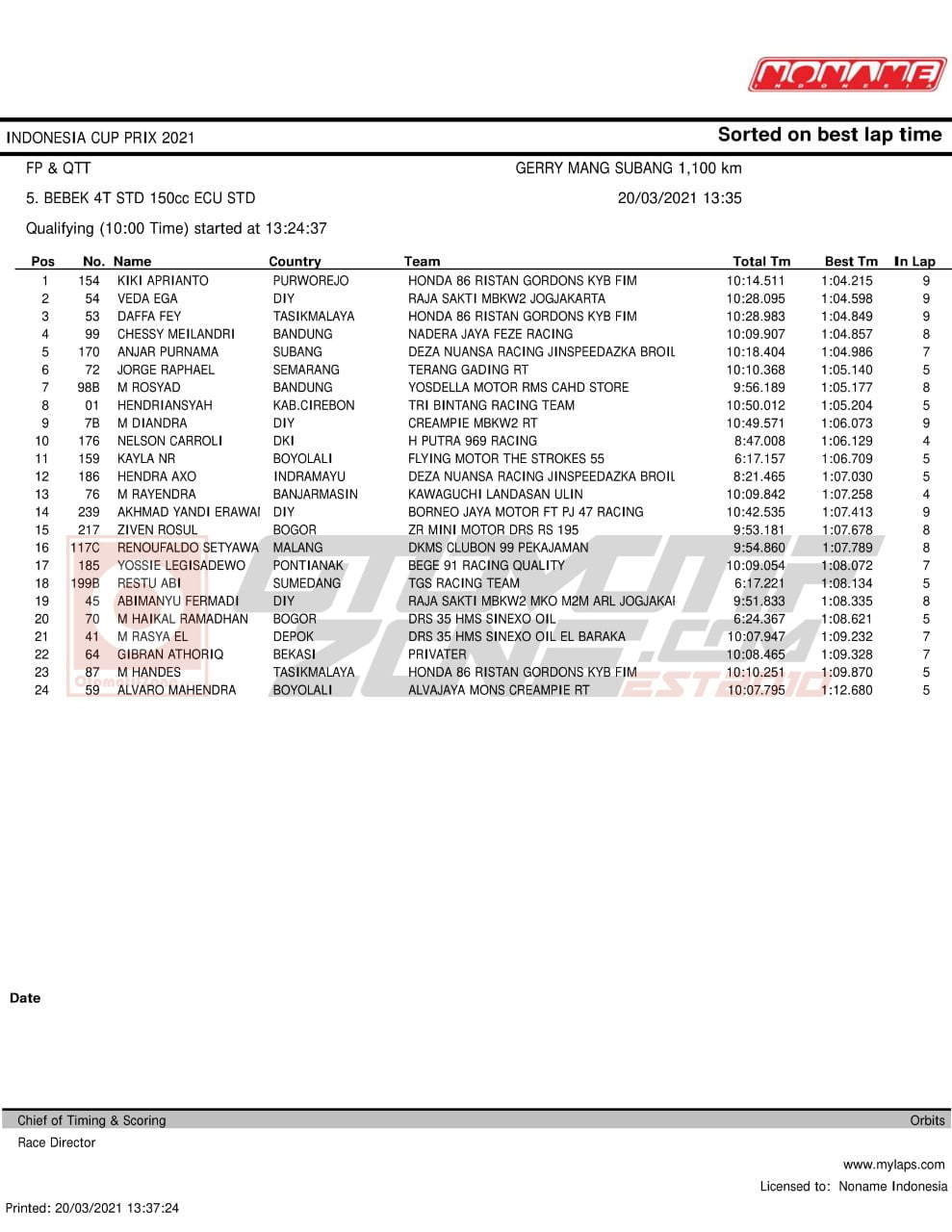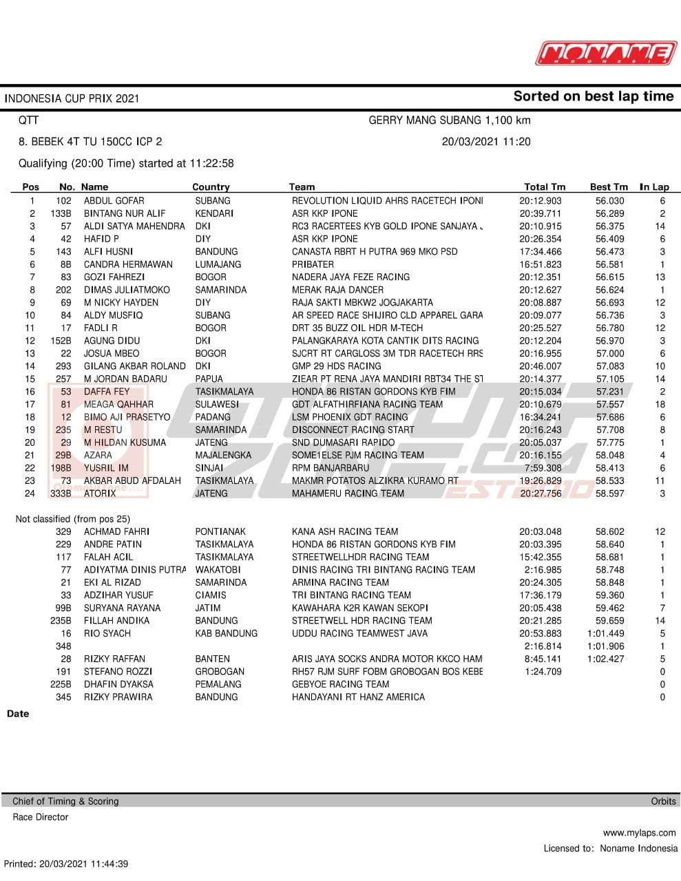 Hari Sabtu ini sudah mulai diadakan Babak Kualifikasi dan QTT dari kelas-kelas yang dilombakan pada ajang ICP dan nampak terlihat persaingan cukup ketat serta kompetitif.