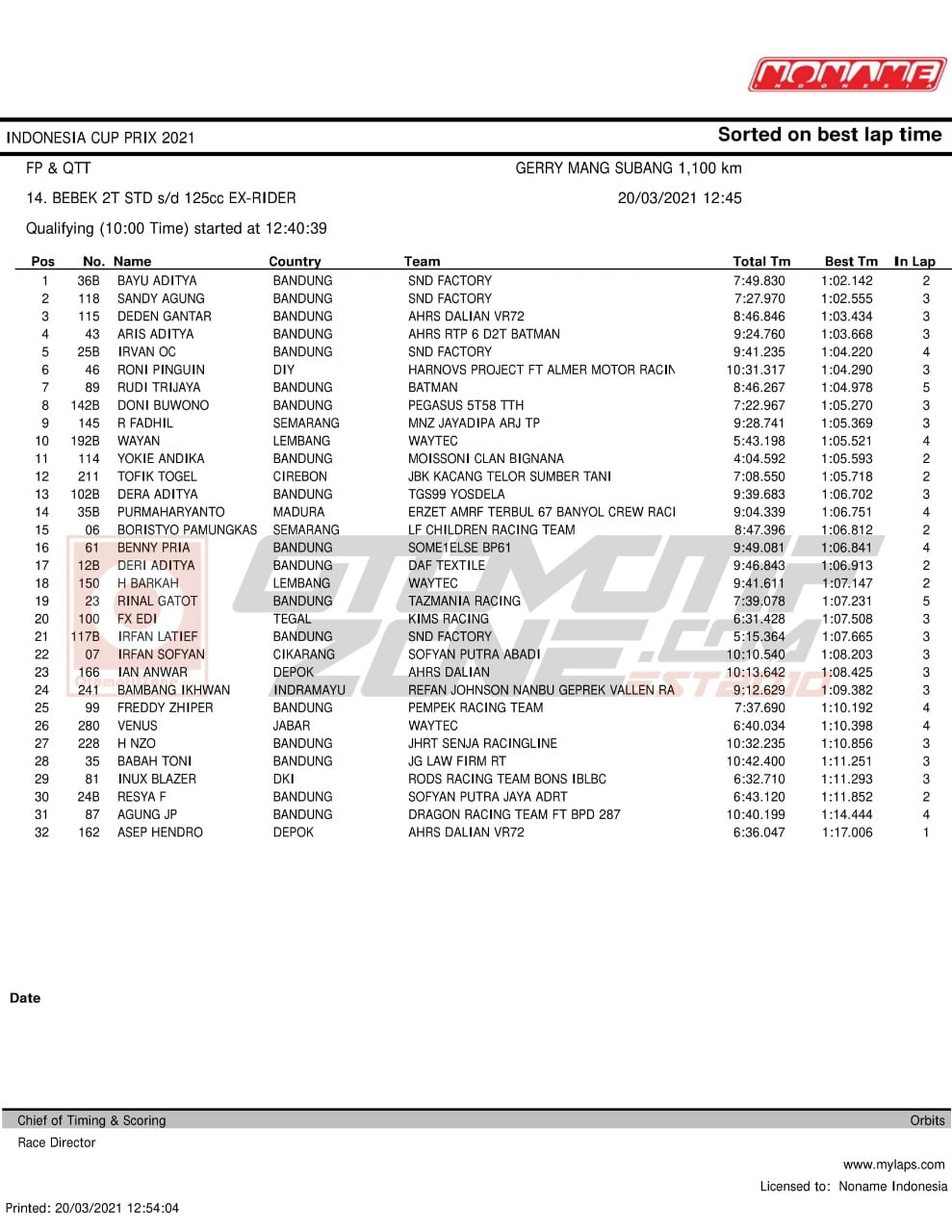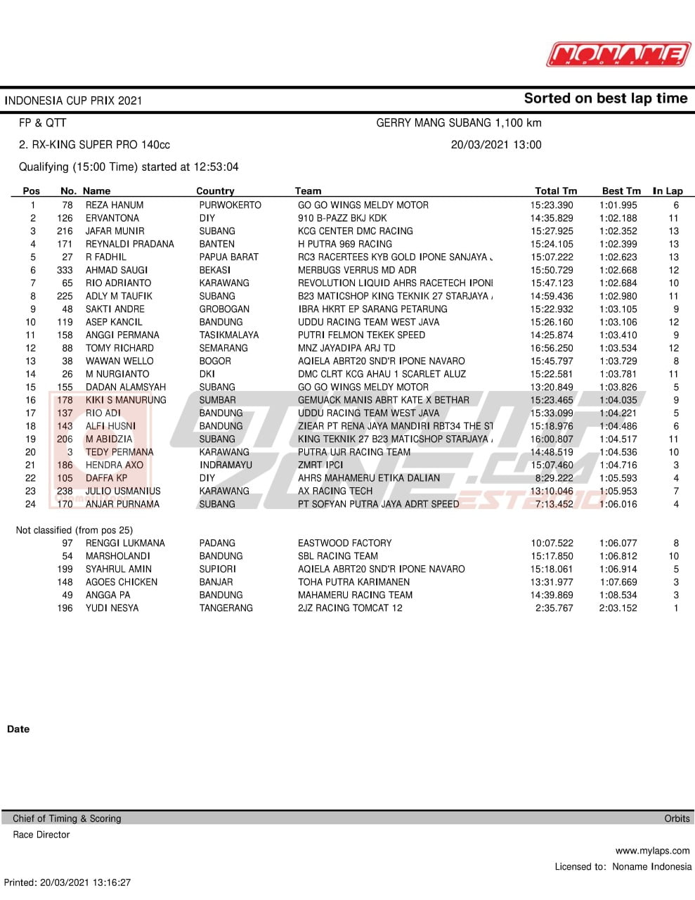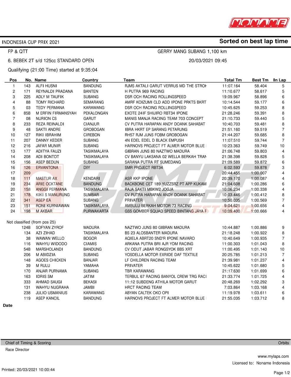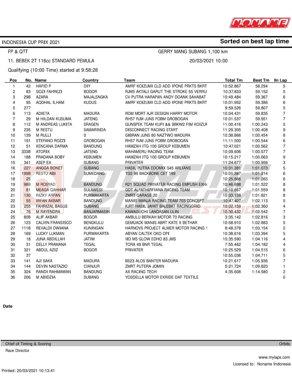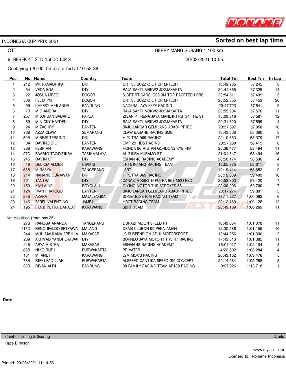 Hari Sabtu ini sudah mulai diadakan Babak Kualifikasi dan QTT dari kelas-kelas yang dilombakan pada ajang ICP dan nampak terlihat persaingan cukup ketat serta kompetitif.