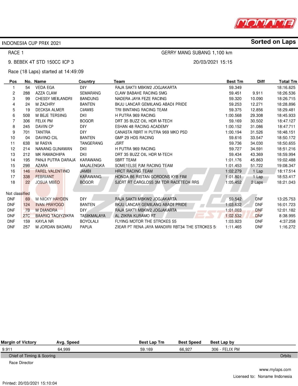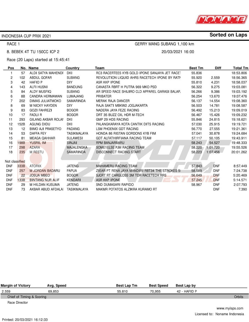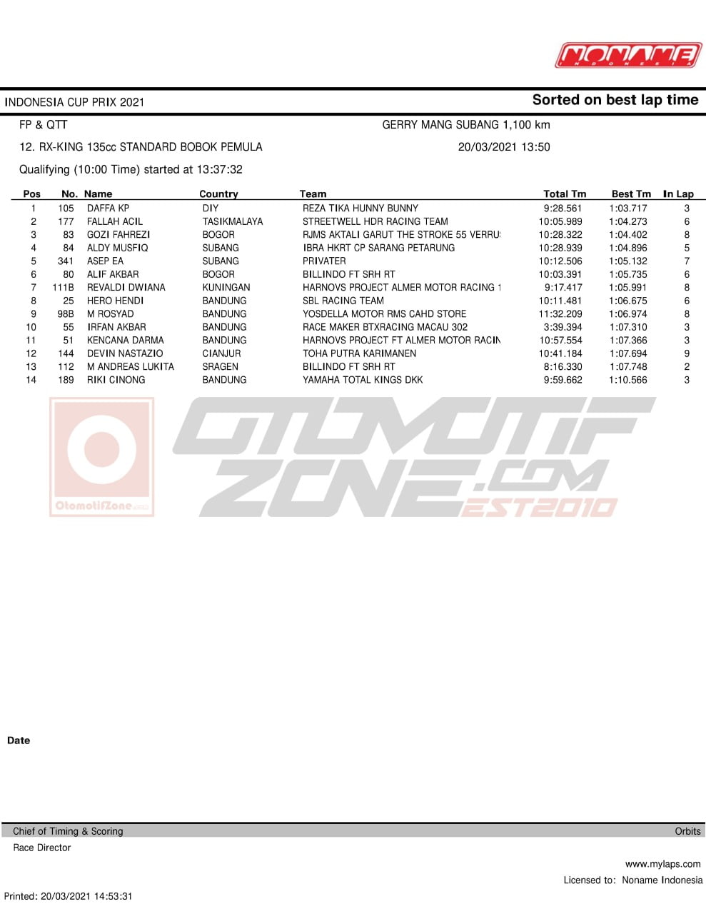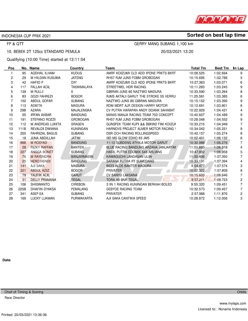 Hari Sabtu ini sudah mulai diadakan Babak Kualifikasi dan QTT dari kelas-kelas yang dilombakan pada ajang ICP dan nampak terlihat persaingan cukup ketat serta kompetitif.