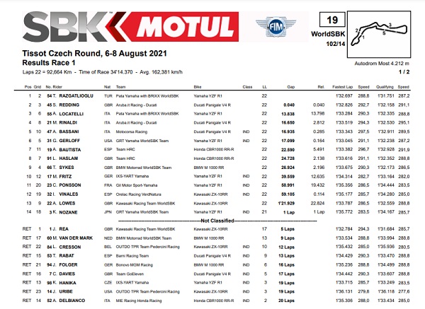 Pada akhirnya ruder Pata Yamaha Brixx tersebut memenangkan kejuaaraan dan mengemas point besar. Sementara rival dekat di klasemen sementara Jonathan Rea harus mengakhiri balap setelah crash di 9 lap tersisa. Pembalap Kawasaki WSBK tersebut tak bisa meneruskan balap setelah tersungkur di tikungan R1 ketika mengikuti Toprak.