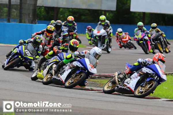 Otomotifzone.com – Sentul. Richard Taroreh berhasil double winner setelah ia bersaing ketat dengan Gupita Kresna di posisi kedua sementara itu pembalap Sidrap Honda Daya KYT Nissin IRC Trjaya Fitriansyah Kete harus terjatuh di tikungan terakhir sirkuit Sentul padahal posisi ia saat itu berpeluangan besar untuk bisa meraih podium.