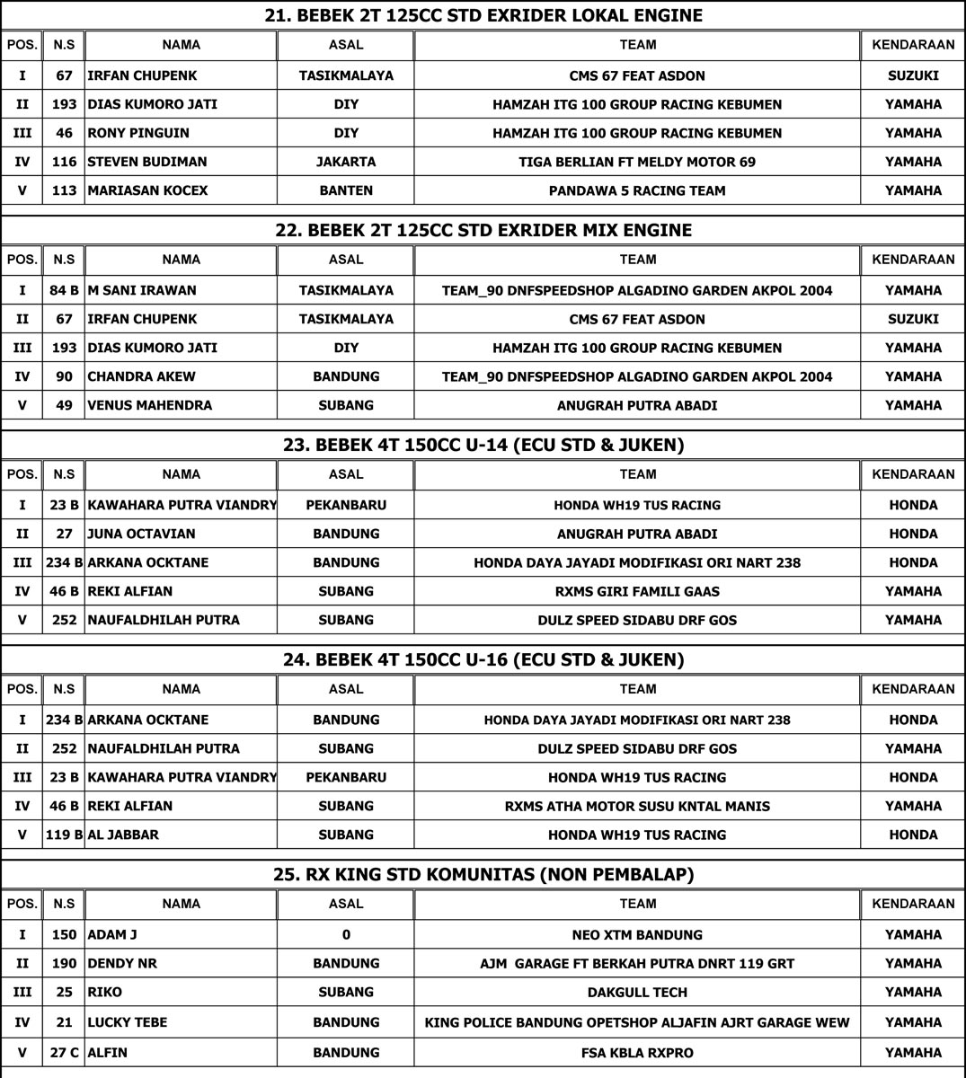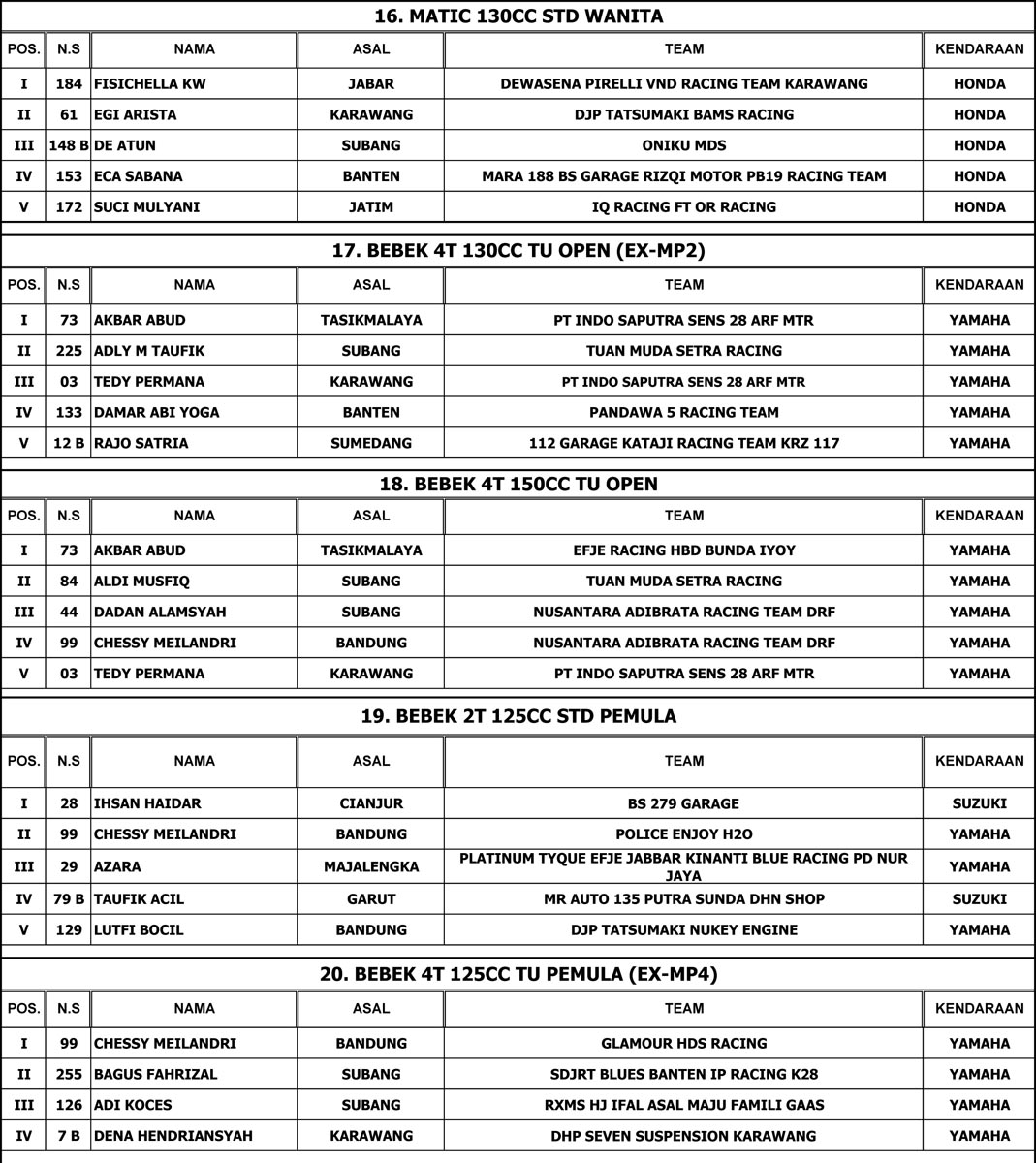 Selamat untuk para juara.