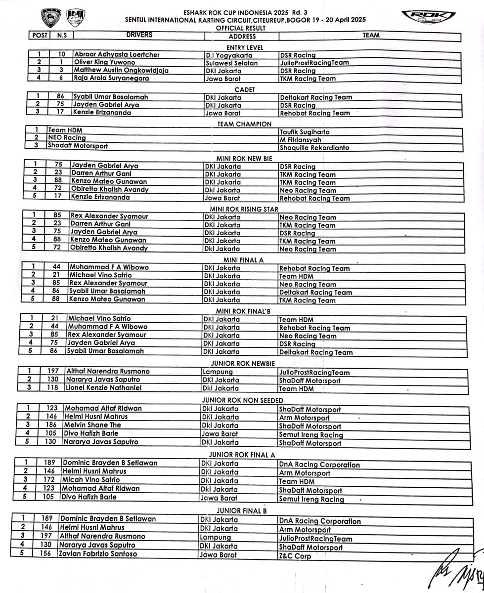 Berikut official race result, siapa para jawara ditiap kelasnya.