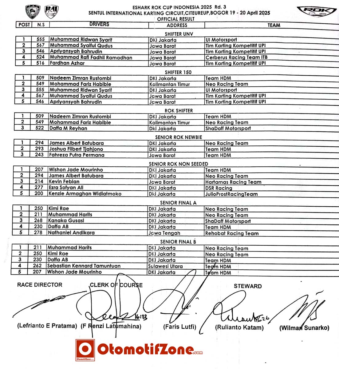 OtomotifZone.com-Sentul. Tanpa terasa gelaran kejurnas Karting Indonesia sudah memasuki 3 putaran, dimana ESHARK Rok Cup Indonesia 2025 ini sudah digelar Sabtu-Minggu, 19-20 April 2025 di Sentul International Karting Circuit Bogor.