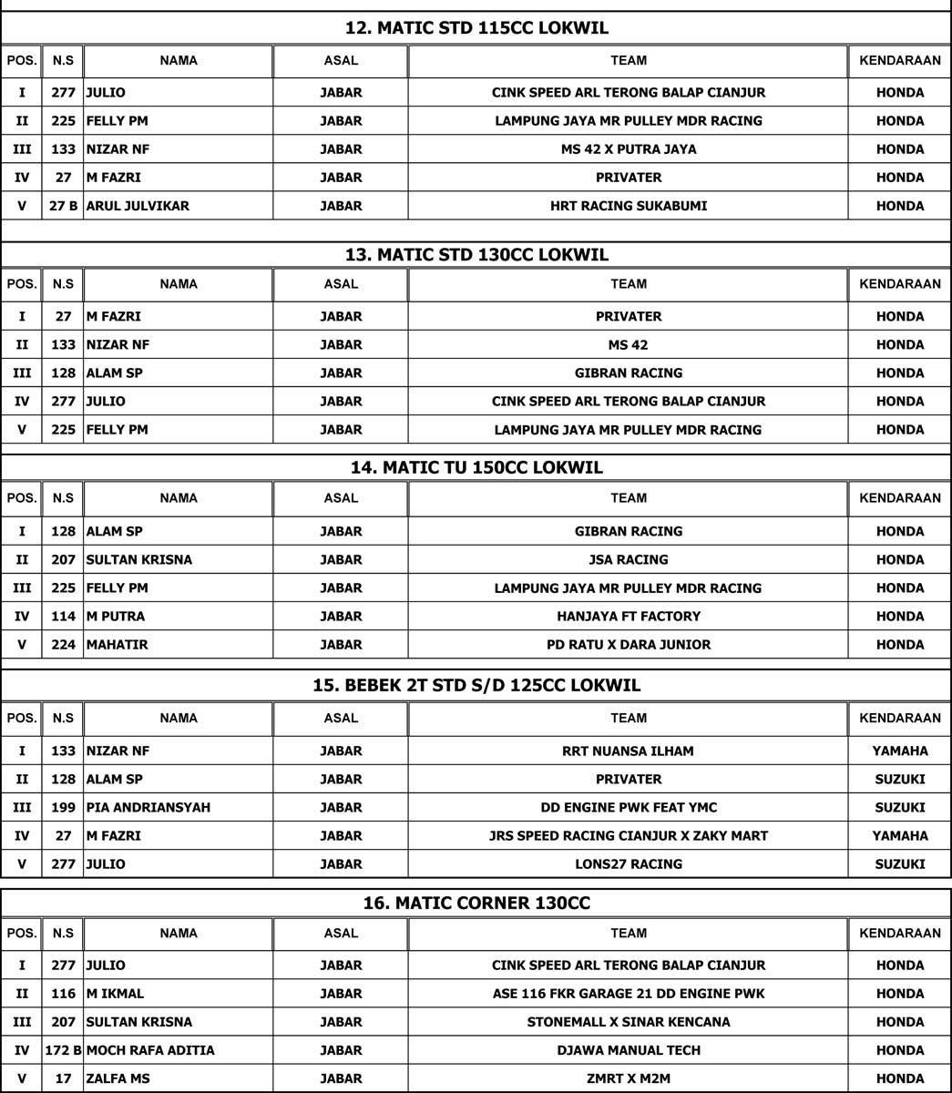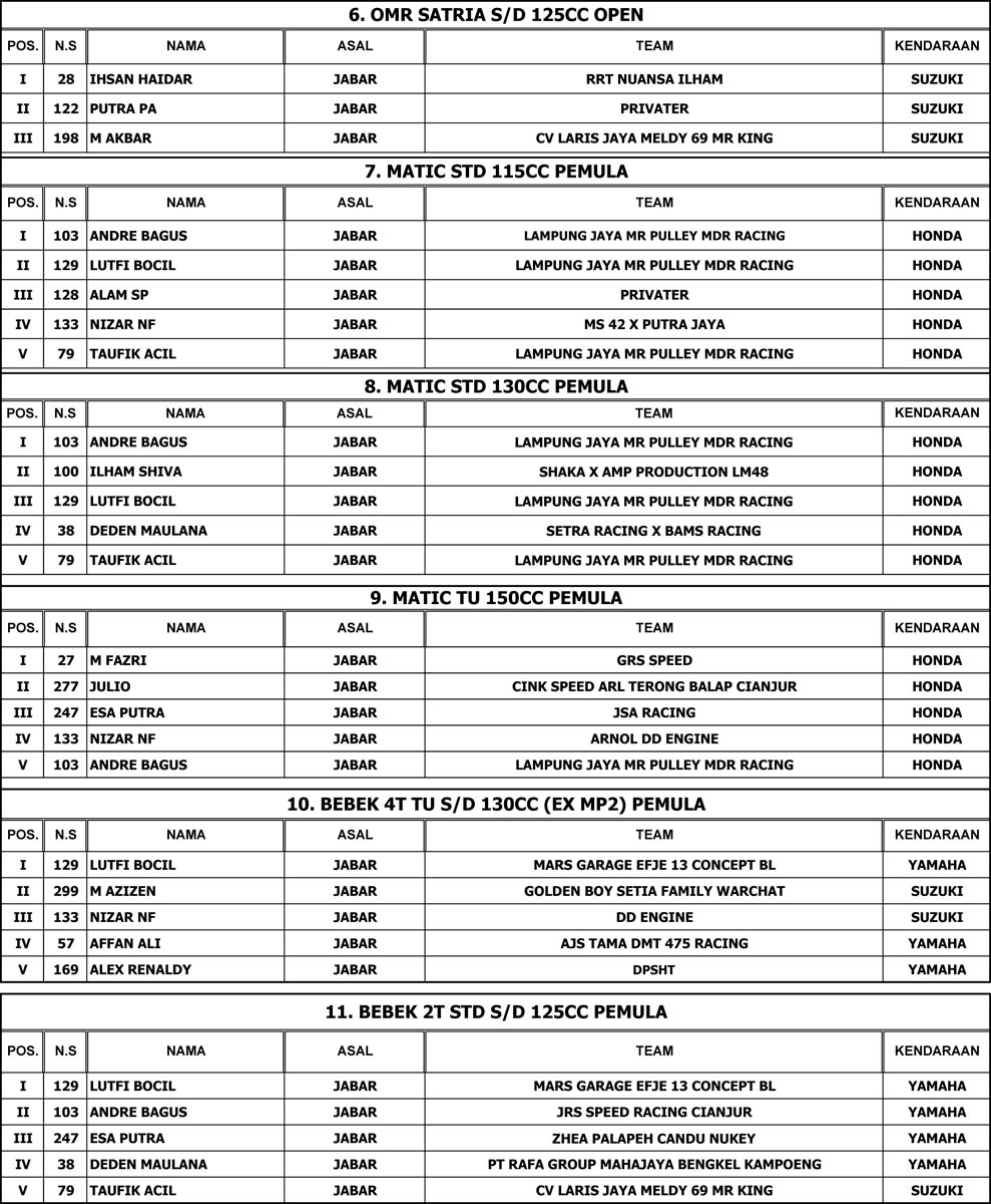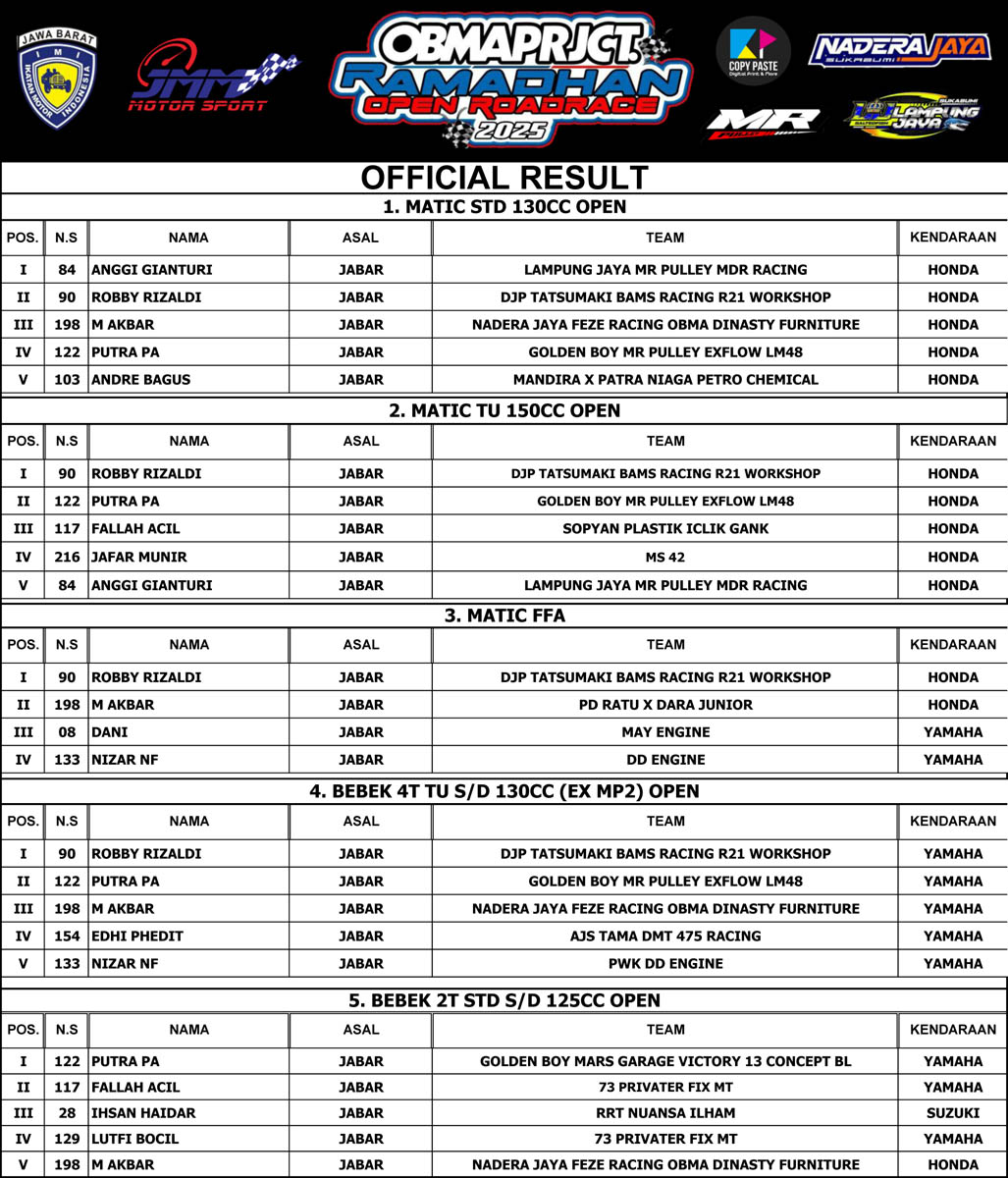 Penasaran ini hasil race OBMAPRJCT Ramadhan Open Road Race 2025 yang digelar Minggu, 9 Maret 2025 hari ini :