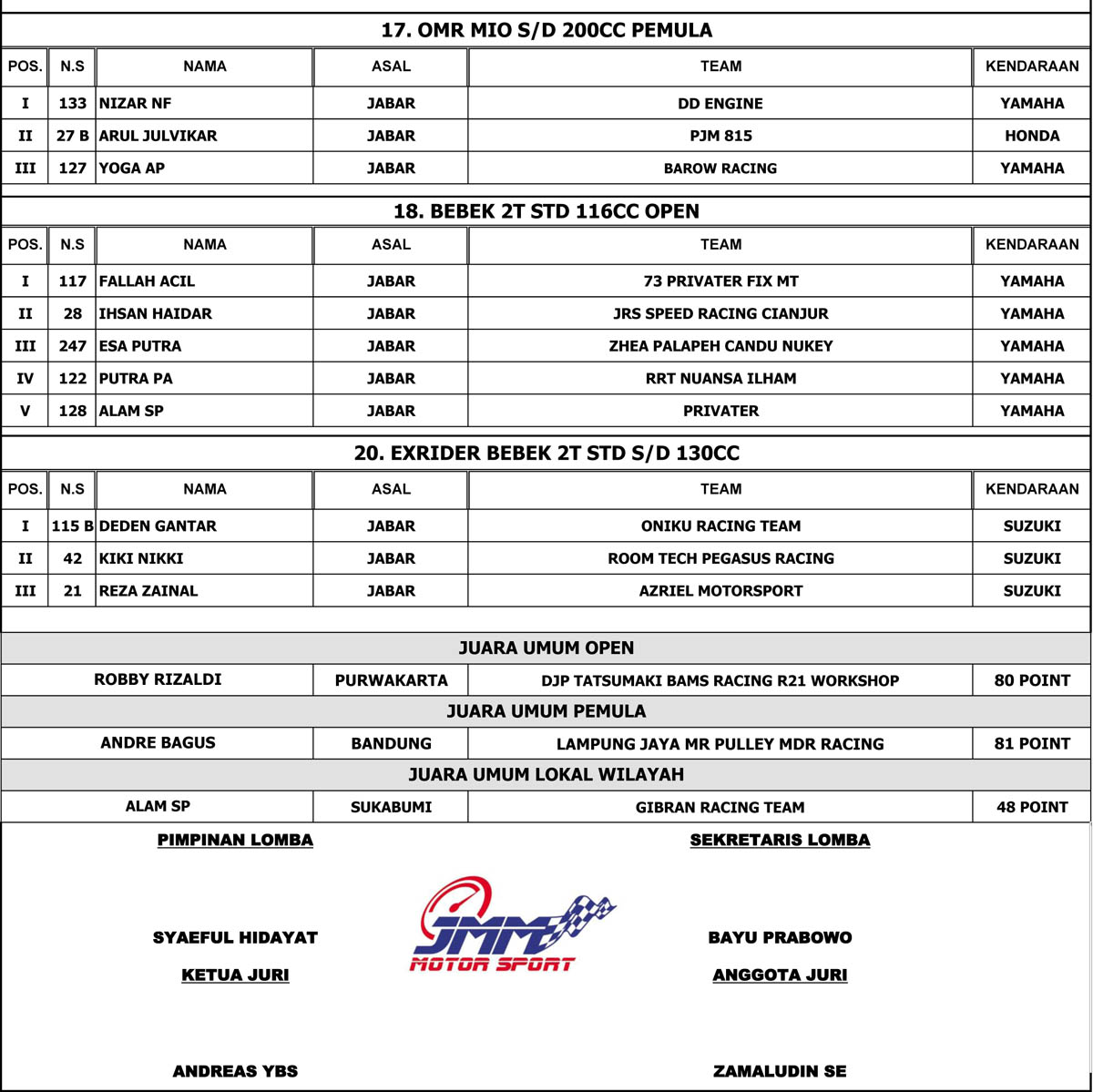 Sukabumi memang sangat haus event, dan JMM club aktif di Jabar ini ditunjuk menjadi racing Committee.