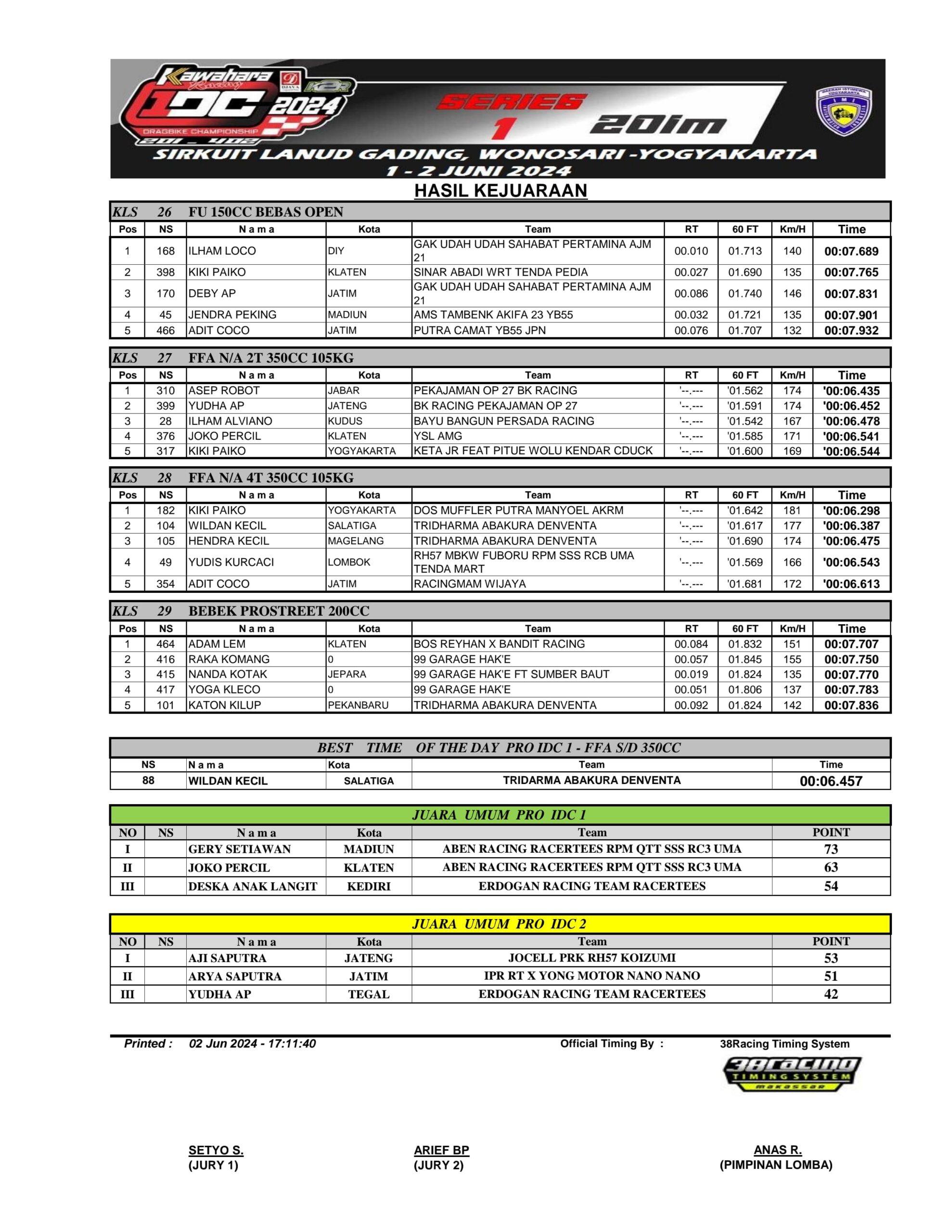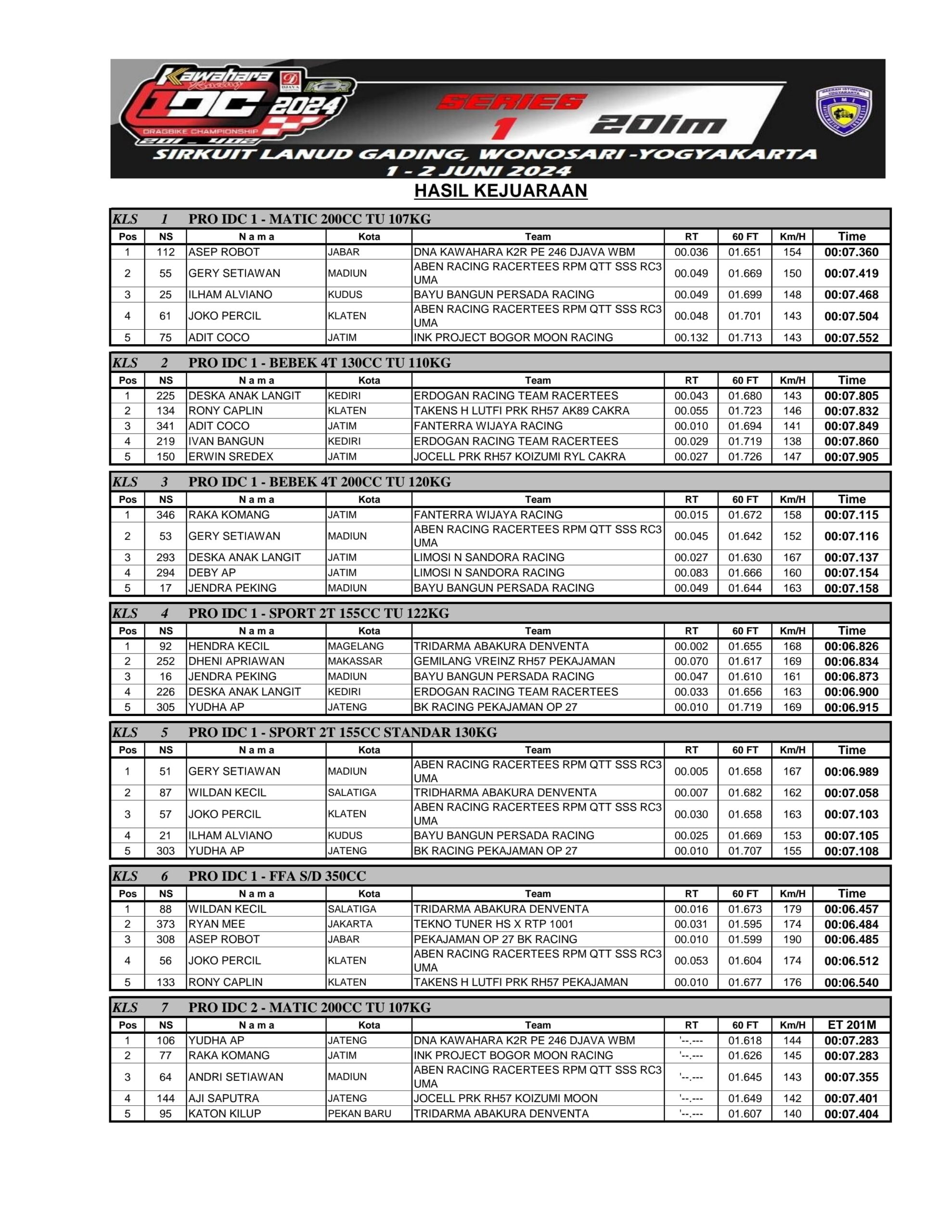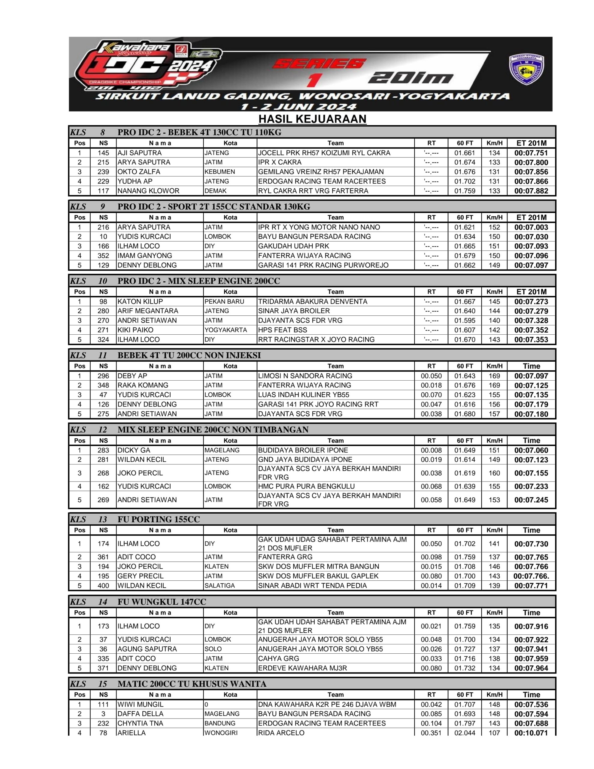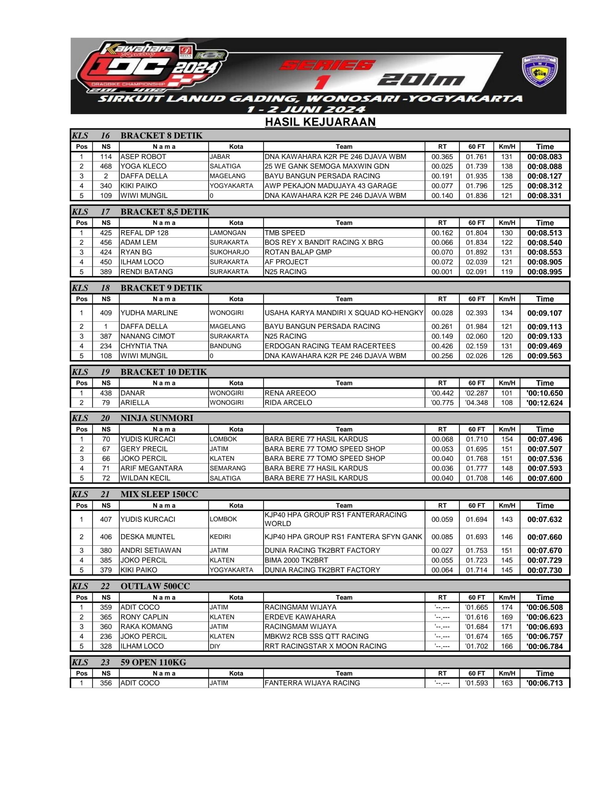 Racing Roda 2Drag BikeRace Results Hasil Seri 1 Kawahara Djava K2R IDC 2024 Penulis Ahmad Fathoni - 2 Juni 2024 0 1619 FacebookXPinterestWhatsApp OtomotifZone.com – Gunung Kidul. Berikut hasil Seri 1 Kawahara Djava K2R IDC bersama Erdeve 1-2 Juni 2024 di Lanud Gading, Gunung Kidul, Jogjakarta.