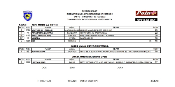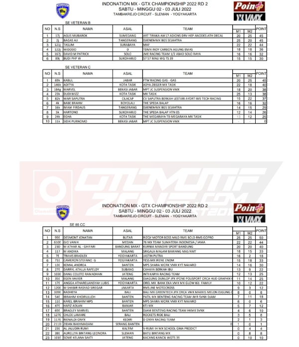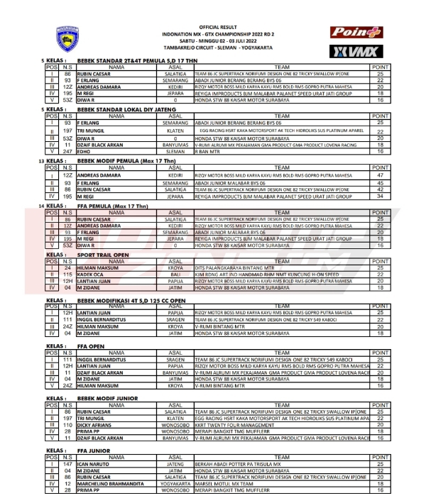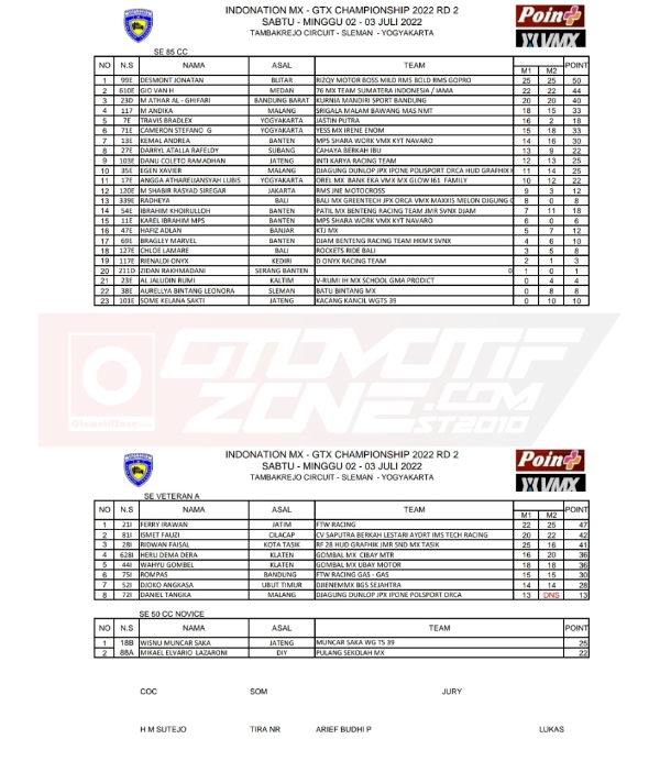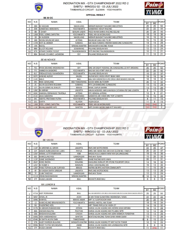 OtomotifZone.com-Jogja. Berikut hasil Seri 2 Indonation MX GTX sirkuit Tambakrejo, Tempel, Sleman, Jogjakarta 2-3 Juli 2022. Seri yang menggunakan kembali lintasan yang di sudah di pakai pada seri pembuka tersebut tetap menyuguhkan pertarungan keren dan berbeda dengan seri sebelumnya.