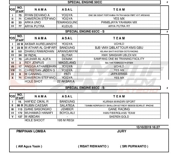 Racing Roda 2GrasstrackMotocrossRace Results Hasil Seri 4 Swallow Excel Design One Indiel Grasstrack Jepara 2019 Penulis Hafid Hapid - 14 Oktober 2019 0 631 FacebookXPinterestWhatsApp OtomotifZone.com-Jepara. Berikut hasil lengkap Seri 4 Swallow Excel Design One Indiel Grasstrack yang di selenggarakan pada hari Sabtu-Minggu 12-13 Oktober 2019 sirkuit Kelapa Park Jepara, Jawa Tengah. Penulis : Hafid | Foto : Hafid