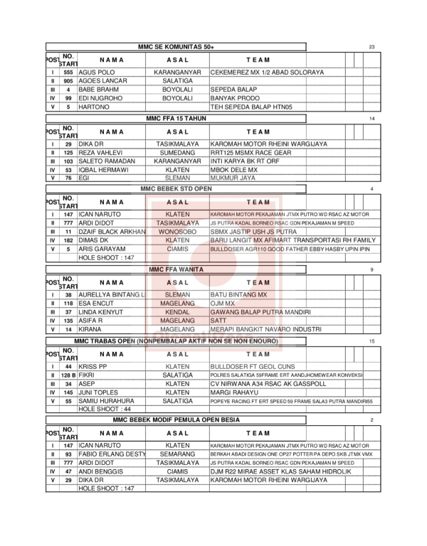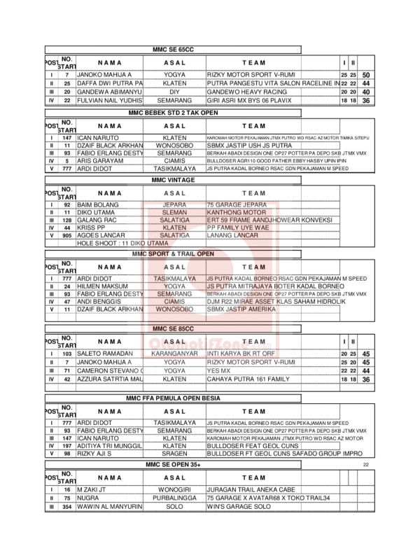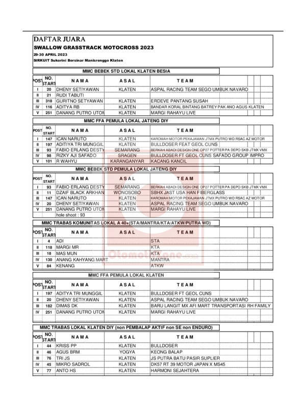 OtomotifZone.com-Klaten. Berikut hasil race dari event Swallow Grasstrack Motocross sirkuit Sukorini, Manisrenggo, Klaten 29-30 April 2023.