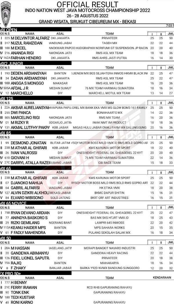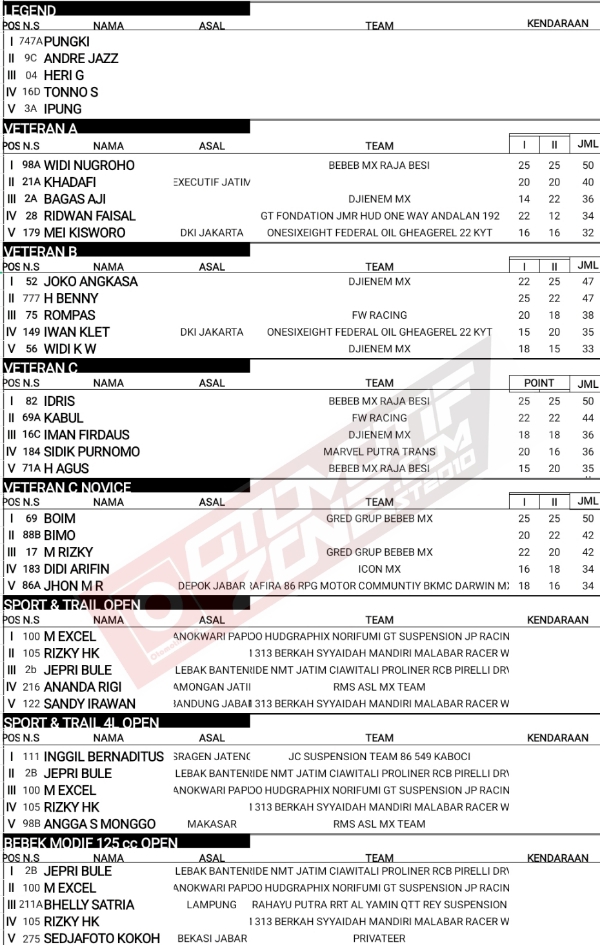OtomotifZone.com-Bekasi. Berikut hasil dari Trisula Indonation West Java MX GTX sirkuit Cibeureum Grand Wisata Bekasi 27-28 Agustus 2022.