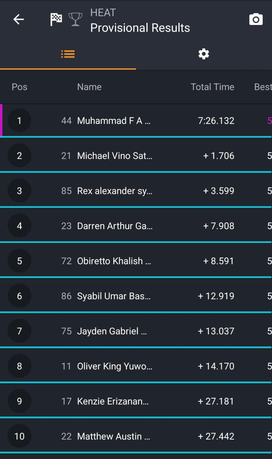 Sejak saat itu, jalannya heat benar-benar berada di bawah kendali Wibowo. Konsistensi kecepatan dan racing line yang rapi membuat dirinya tidak tersentuh hingga bendera finish berkibar. Hasilnya, Wibowo menutup sesi heat dengan kemenangan meyakinkan di posisi pertama.