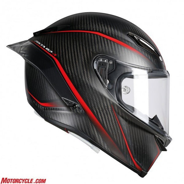 Helm AGV Pista GP R ini seluruh bagiannya berbahan utama serat karbon, dimana bukan hanya lapisan luarnya saja, tapi hingga detailnya juga. Helm ini dilengkapi dengan spoiler pada bagian belakang untuk mengurangi turbulensi di belakang kepala pengendara. AGV mengklaim bahwa peningkatan aerodinamis helm ini 4% dari Pista GP membantu kepala pengendara tetap stabil meskipun memutar kepala pada kecepatan tinggi.