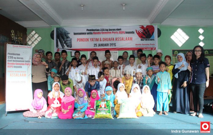OtomotifZone.com – Bandung. Memperingati hari Gizi dan Makanan Nasional 2016 yang jatuh pada tanggal 25 Januari setiap tahunnya, Honda Exclusive Part Shop (HEPS) selaku Part Shop yang dikelola PT. Daya Adicipta Motora (distributor utama Sepeda motor & suku cadang Honda di Jawa Barat) mengadakan acara penyerahan donasi kepada anak-anak panti asuhan.