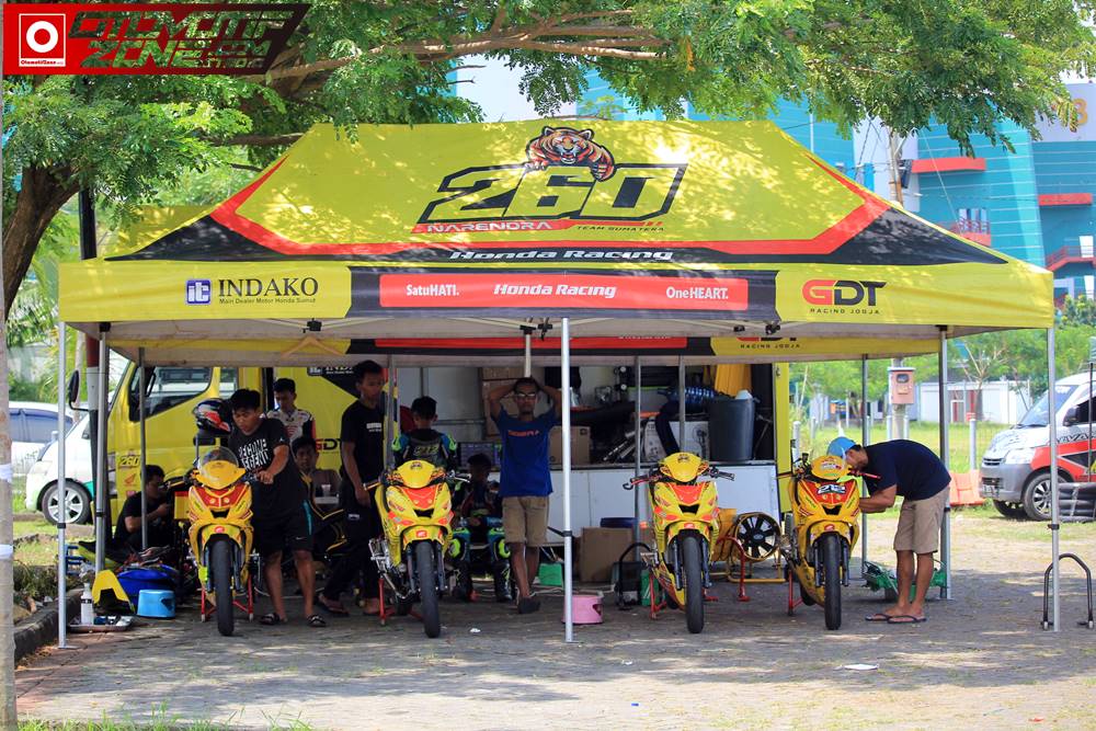 OtomotifZone.com – Surabaya. Tim asal Sumatera Utara, Honda 260 Narendra pindah haluan ke pulau Jawa. Mereka akhirnya mengikuti beberapa event bergengsi seperti IMS, Oneprix dan Kejurnas Motoprix region Jawa. Pada (3/3/22) tim dengan dominan warna kuning ini sudah datang di Surabaya untuk turun diajang Kejurnas Motoprix putaran 1 Surabaya. Tidak muluk muluk, owner hanya suruh pebalap main Loss.