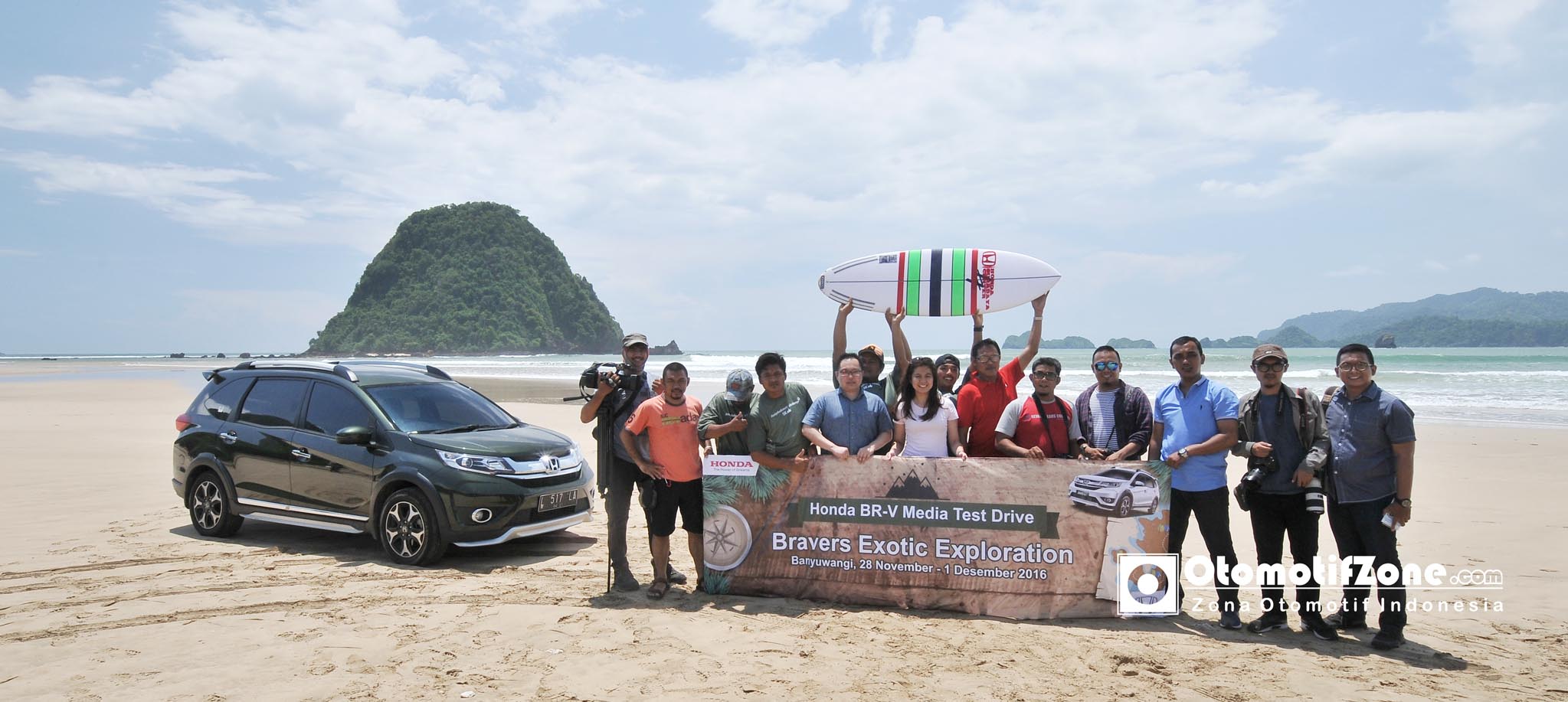Diberangkatkan dari dealer Honda Istana Banyuwangi, Senin(28/11) rombongan awak media meluncur ke Pantai Pulau Merah Banyuwangi, dengan menempuh jarak 61 km dalam waktu 1 jam 45 menit. Jalan yang dilalui relatif normal (beraspal) hanya sesekali melewati jalanan berlubang. Sesampai di Pantai Pulau Merah rombongan awak redaksi langsung tertuju pada mobil Honda BR-V, dimana mobil tersebut sudah terparkir tepat di bibir pantai Pulau Merah, Banyuwangi.