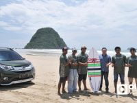“Disini, kami tidak hanya melakukan photoshoot Honda BR-V di tepi Pantai Pulau Merah, Banyuwangi. Ada dua agenda yang kami adakan, antara lain CSR dengan memberikan bantuan papan selancar untuk kelengkapan penjaga pantai. Yang kedua kami memberikan tantang untuk surfing kepada teman media,” ujar Ingelina Aprilliawati, Chief of Marketing Communication Honda Surabaya Center (HSC).