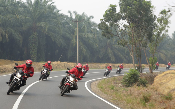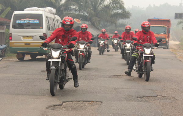 OtomotifZone.com – Jakarta. Rute panjang Ekspedisi Nusantara Satu Hati untuk Negeri menjelajahi 3 pulau Sumatera – Jawa – Kalimantan benar-benar menjadi ajang bagi para rider untuk menguji ketangguhan 3 tipe motorsport Honda, termasuk Honda CB150R StreetFire. Performa dan ketangguhan mesin, serta kekokohan rangka dan suspensinya benar-benar diuji di berbagai kondisi jalan di tiga pulau yang di lalui.