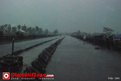Namun dewi fortuna masih belum memihak di gelaran ini. Karena tepat di pukul 16.15 wib hujan lebatpun dating tak terhindari. Padahal saat itu race kurang lima kelas. Yakni DB 5 Bebek Tune Up 115 cc, DB 14 Sport Tune Up 2 tak 155 cc, Db 11 Bebek Tune Up 2 Tak 130 cc, DB 21 Satria –FU Standart Lokal Mojokerto – Jombang dan DB 12 Sport 4 Tak 200 cc (Non DOHC). Dari ke lima kelas tadi beberapa kelas merupakan kelas unggulan DB 14 Sport tune up 2 tak 155 cc yang merupakan kelas yang ditunggu – tunggu para dragster. Dan akhirnya dari kelima kelas tadi sebanyak 44 dragster batal line up. “ Dari beberapa tim yang sudah berada di Parc Ferme kita tawarkan untuk terus atau berhenti, setelah beberapa menit hujan tak kunjung reda dan lintasan yang dipakai juga tergenang air kita putuskan Force Majeure karena cuaca “ tegas DT Pramudya selaku Pimpinan Lomba.