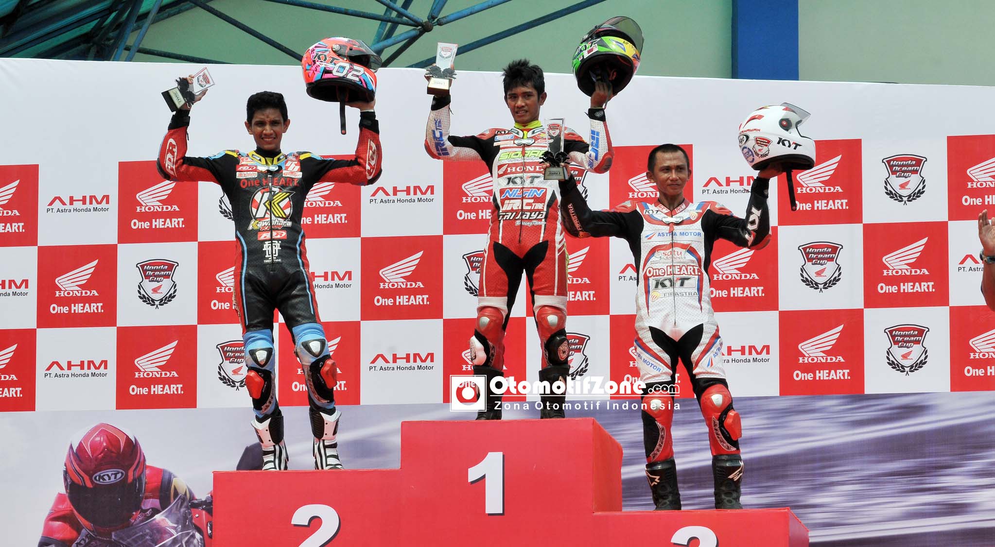 OtomotifZone.com – Kanjuruhan, Malang. Ajang balap One Make Race (OMR) garapan PT Astra Honda Motor (AHM) bareng PT Mitra Pinasthika Mulia (MPM) yang bertittle Honda Dream Cup (HDC) Seri 1 Malang sukses digelar. Kelas baru Bebek Tune up 150cc terbuka yang menggunakan New Honda Sonic 150R mampu menjadi tontonan yang menarik.