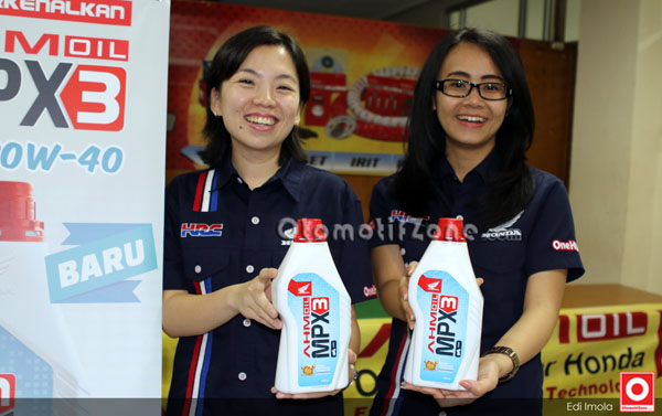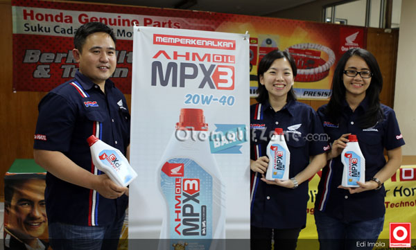Elisabeth Riany selaku General Manager Parts Sales, Marketing and Logistic PT DAM menerangkan, “AHM Oil MPX 3 merupakan persembahan Honda untuk menjawab kebutuhan konsumen Indonesia yang telah memilih sepeda motor Honda. Honda menghadirkan oli dengan tingkat kekentalan tinggi atau high viscosity 20W – 40. MPX3 hadir sebagai oli alternatif untuk motor Honda terutama untuk sepeda motor bebek rakitan tahun 2009 kebawah seperti Legenda, Supra, Karisma, dan sebagainya. Varian baru ini otomatis menemani performa tinggi yang dihasilkan AHM Oil MPX 1 dan SPX 1 untuk tipe bebek serta MPX 2 dan SPX 2 untuk tipe skutik dengan tingkat kekentalan terbaiknya 10W-30.”sang GM photo bersama jemmy Febrianto dan Honey G