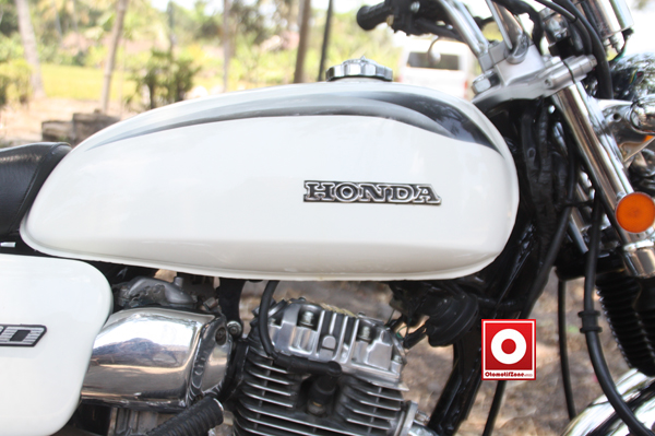 Langsung saja kita lihat proses modifikasinya, rangka orisinal bawaan Honda Tiger dipotong 50cm di bagian belakang diganti dengan pipa custum 22mm dengan tebal pipa 2mm, urusan rangka selesai langkah selanjutnya membangun tangki baru kali ini bahan yang dipakai plat 0,8mm, tak ketinggalan jok bawahan tiger juga dimodif ulang lagi, supaya tampilan motor bersih maka di bagian mesin dan knalpot dipoles dengan larutan elektronik alias crom biar terlihat kinclong. Nah proses yang paling ditunggu-tunggu adalah proses finishing, mengandalkan cat merk sikken dan clear spiez hekker warna putih dengan sedikit sentuhan grafis di bagian tangki aura motor klasik muncul.