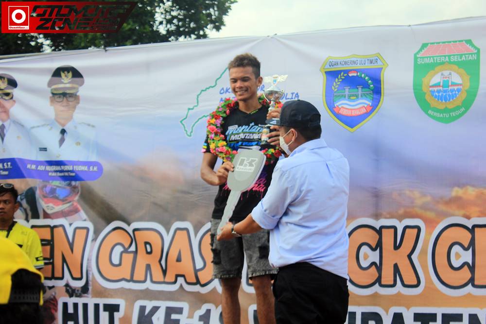 OtomotifZone.com – Oku Timur. Luar biasa persaingan di gelaran Open Grasstrack Championship Hut Oku Timur 18 yang berlangsung (12-13/3/22) di Sirkuit Sehaluan , Komplek Perkantoran Pemkab Oku Timur, Sumatera Selatan. Persaingan sangat sengit. Terutama dikelas Open yang memperebutkan hadiah juara umum satu unit motor Kawasaki KLX. Adi Ceto Jatuh bangun dan bawa pulang KLX.