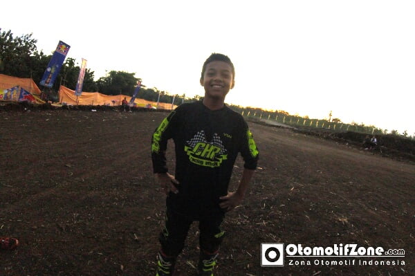 OtomotifZone.com-Gunung Kidul. Lama sekali nama pembalap dengan nickname Ican Naruto ini tak terlihat di lintasan setelah mengalami patah tulang paha kanannya November tahun lalu. Terhitung 7 bulan dirinya absen balap grasstrack kelas Minimoto. “Sejak jatuh sudah gak pernah pegang motor lagi. Latihan baru kemarin sebelum balap cuma muter-muter di lapangan sepakbola. Latihan balap ya Minggu pagi sebelum balapan di mulai,” terang pembalap bernama Ikhsan Sudirman ini.