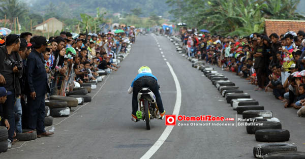 Dikelas Bracket Time 9 detik karyawan swasta ini menempati posisi 2 dengan waktu 9.076 detik menunggangi matik 155 cc TU garapan Kodir Bangkit Jiwa rumah korek sang mekanik Budi dibilangan Warung Lobak Soreang Kabupaten Bandung.