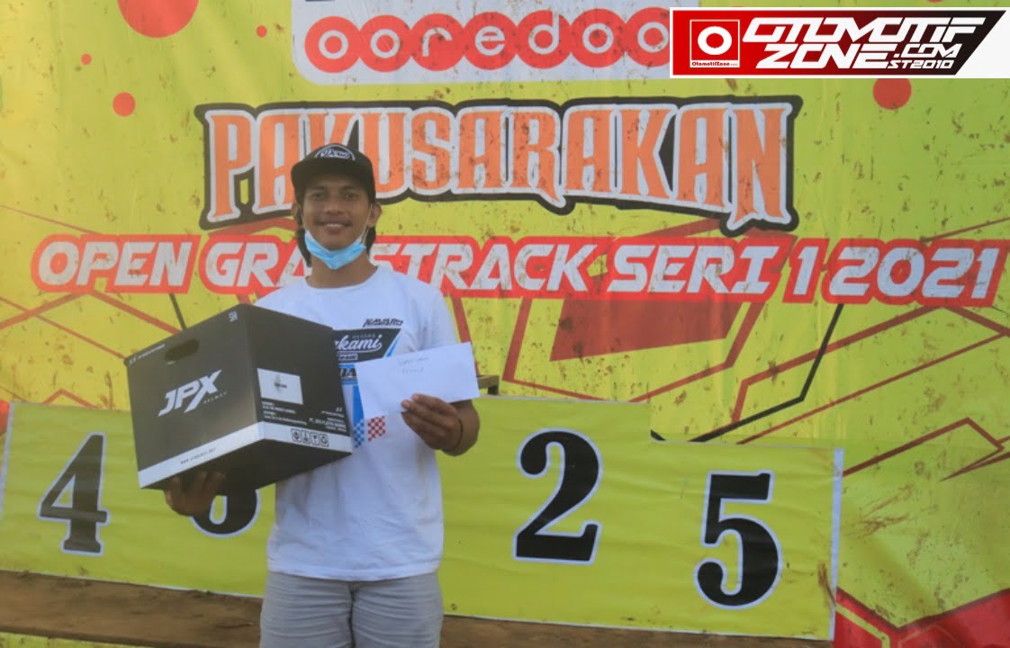OtomotifZone.com – Sukabumi. Juara Umum di kelas Pemula jadi milik Dadan Ardiansyah, pembalap asal Pangandaran yang bernaung di tim GTD KMS Platinum Apparel SRP Segitiga Baja saat berlaga di gelaran IM3 Indosat Ooredoo Pakusarakan Open Grasstrack Seri I 2021 di sirkuit Yudha Dirgantara, Komplek Satrad 216 AURI, Surade, Kabupaten Sukabumi, Jawa Barat, (13-14/3) akhir pekan lalu.