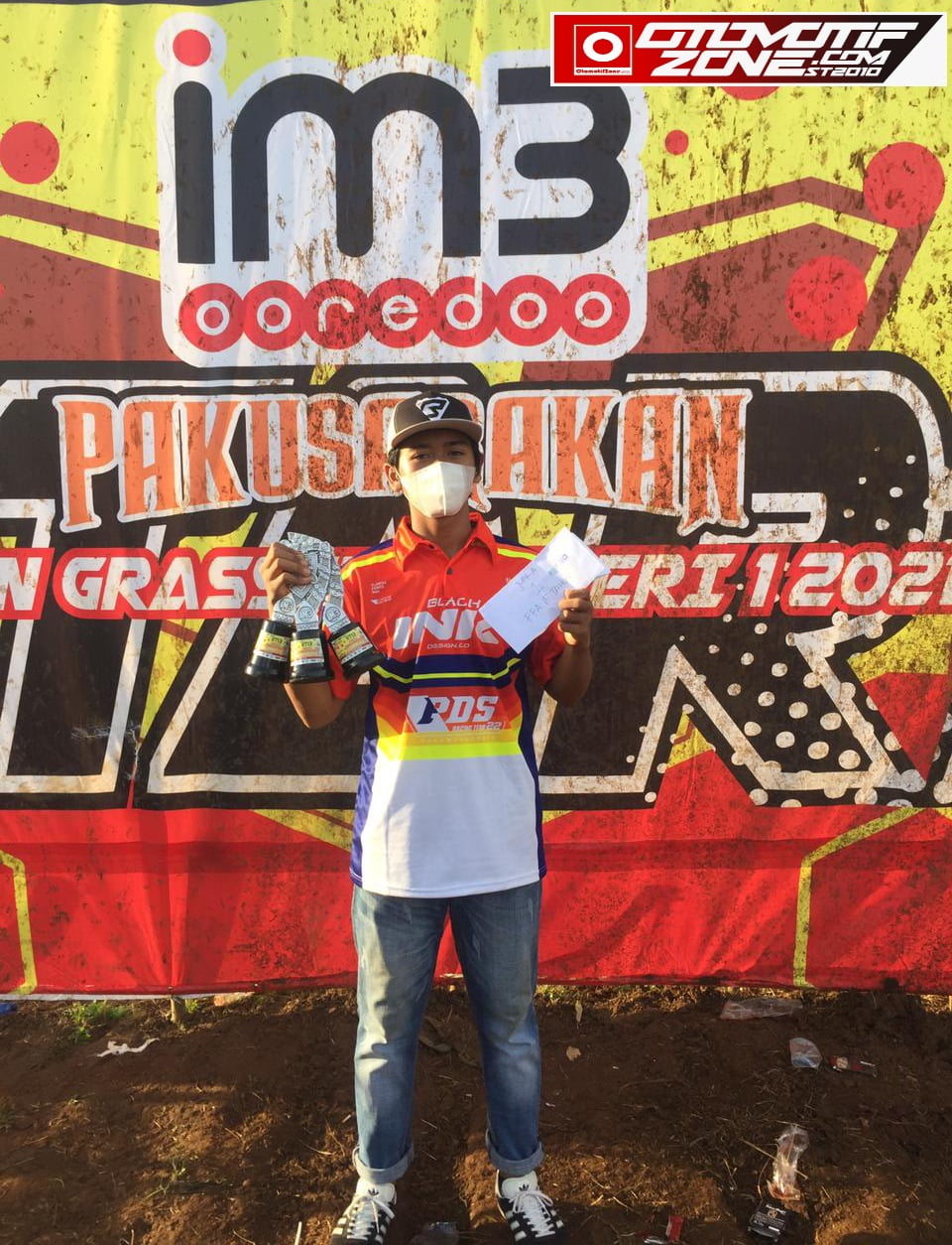 OtomotifZone.com – Sukabumi. Rhevaldo nyaris sapu bersih predikat juara pertama di kelas 15 Tahun dalam ajang IM3 Indosat Ooredoo Pakusarakan Open Grasstrack Seri I 2021 yang berlangsung di sirkuit Yudha Dirgantara, Komplek Satrad 216 AURI, Surade, Kabupaten Sukabumi, Jawa Barat, (13-14/3) pekan lalu.