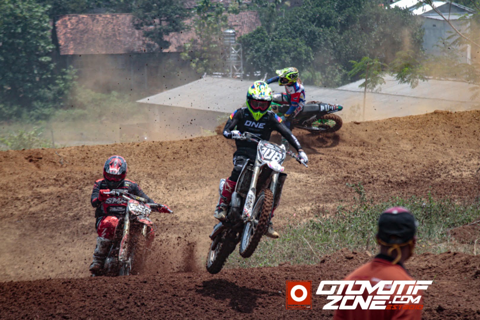 OtomorifZone.com – Semarang. Pada ajang Indiel Grasstrack Series 2020 di sirkuit Mijen, Semarang, Jawa Tengah, di hari pertama, Sabtu (12/9), Mamo SS pembalap tim Victory Ruteng PSMX Agus Klaten Design One JTMX Norifumi Ipone RBT34, berhasil finish urutan pertama di 3 kelas sekaligus dalam Moto 1.