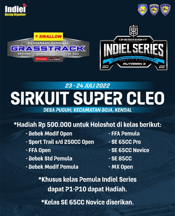Tetapi ini khusus di kejuaraan Indiel Series ya. Draft kelas sudah terpampang jelas di pamflet yang kami posting itu. Jadi ini bukan gebrakan kaleng-kaleng. Kelas penting dengan pembalap yang berjubel akan menjadi tontonan menarik karena ada hadiah Holeshot.