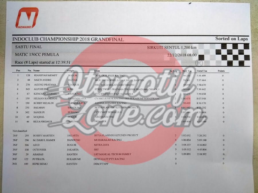 Jarak 2 detik mampu diberikan Memet dengan motor Injeksinya itu. Dan berikut hasil Race Matic 150 cc Pemula: [Penulis: Dewantara| Foto: DIFA]