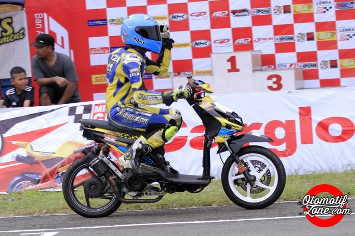 OtomotifZone.com – Jakarta. Ryansyah Memet bikin kejutan di kelas Matic 150 cc Pemula di INDOMATIC 2018 (22/12) di Sirkuit Internasional Karting Sentul, Bogor. Selain mampu menjadi juara, dirinya bikin kejutan dengan mampu menjadi juara pertama menggunakan motor Injeksi. Meski lawan lawan yang dihadapi menggunakan motor dengan spesifikasi Karburator.