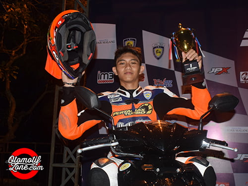 OtomotifZone.com – Kanjuruhan, Malang. Terjawab sudah siapa jawara Final Kejurnas Supermoto tahun 2017. Karena Diva Ismayana dinobatkan menjadi juara didua kelas Kejurnas yakni Open Pro dan 250 Pro ditambah jawara di Open Internasional kemarin (8/10) di Stadion Kanjuruhan Kabupaten Malang. Dari hasil itu maka beberapa crosser diganjar sebuah motor Matik terbaru dari pihak penyelenggara Tak hanya itu, karena pemegang Standing poin tertinggi Kejurnas Supermoto 2017 di kelas 250 Pro malahan Farhan Hendro dan Super Stock 175 Ade Elvira dan di Pro Open lagi – lagi Crosser Bali Diva Ismayana