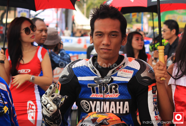 Hal serupa juga di alami Gupito Kresna. Pembalap asal Kalasan, Jogjakarta dari Kawasaki Manual Tech ini sempat terjatuh juga. “Parahhhh bangettt. Tadi jatuh gara-gara bablas lurus. Kepleset, pokok’e tadi latihan yang jatuh banyak banget,” heran pemilik nomer start 23 tersebut.
