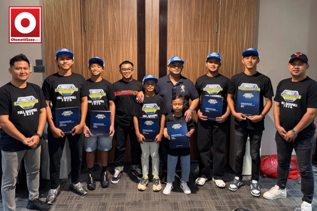 OtomotifZone.com – Pasuruan. Team syarat juara Rizqy Motorsport Pasuruan resmi memperkenalkan formasinya semalam. Team milik H. Rochmawan ini ada perubahan dalam susunan pembalapnya. Beberapa pembalap ada yang tak lagi bersama team yang tetap berkolaborasi di ranah grasstrack dan motocross ini. Jelas terlihat Lewis Stewart dan Desmont Jhonatan tak ada di barisan 2026.