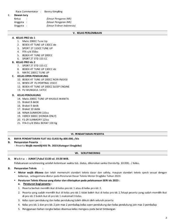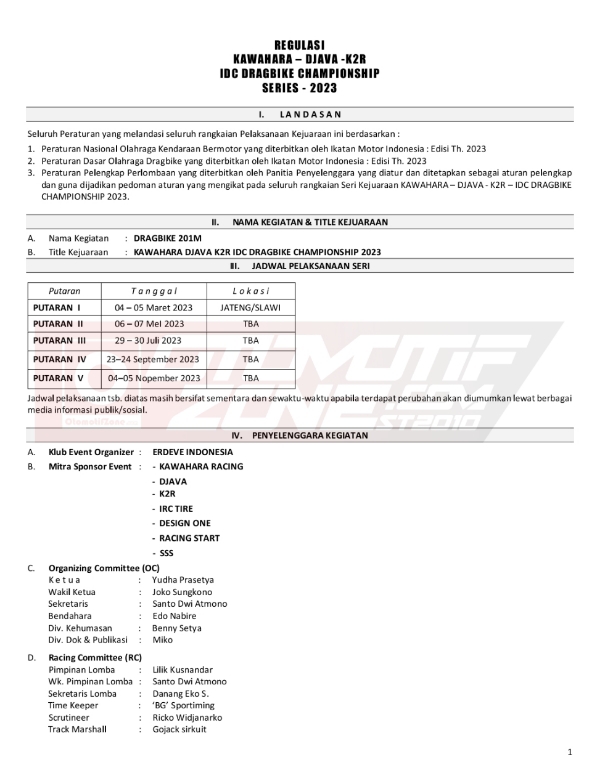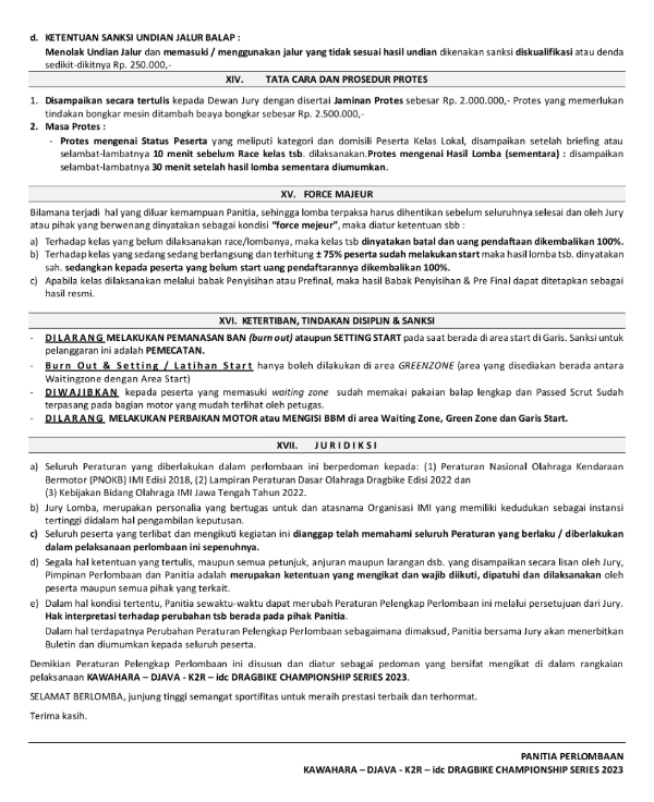 OtomotifZone.com-Prambanan. Erdeve Indonesia selaku EO pelaksana gelaran legendaris kurun waktu 12 tahun ini menginformasikan regulasi untuk event 2023. Beberapa point penting Kawahara Djava K2R IDC 2023 langsung di gas setelah perkembangan Drag Bike terus mengalami perubahan yang makin hari makin ketat persaingannya.