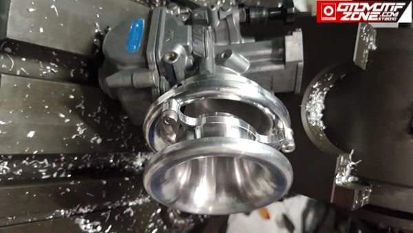 Kombinasi beragam karena bisa dengan mudah ganti variasi ukuran ketika berada di sirkuit. Plug and play deh pokoknya. Setelah hasil di atas Dynotest serta hasil test langsung di sirkuit menunjukkan progres bagus pada minggu kemarin, produk ini sudah siap jual. Selain itu Donta Motor juga membuat velocity model seperti ini untuk motor-motor injeksi juga. Ready untuk semua jenis TB motor injeksi. Mungkin bisa order dan kalau berminat bisa coba produk ini..