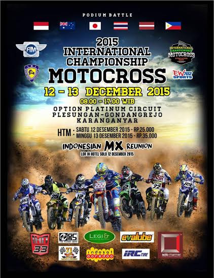 “Kalau pembalap asing masih finalisasi. International rider yang sudah confirm : Ralph Ramento MX2 (Phi), Gabriel dela Cruz MX2 (Phi), John Marick Antonio SE 85 (Phi), Tanarath MX2 (Thai), Daiki Baba (Jpn), Lewis stewart (Aust/Ina). Lainnya masih nunggu konfirmasi,” buka Endiatmo Widagdo selaku EO yang mengurus event akbar di Jateng ini. Bener, ini event yang sudah lama ditunggu karena jateng sendiri sudah lama tidak membuat event bertaraf International. “Konten utamanya kita ingin flash back kebelakang dan menuju 2016 supaya lebih baik,” kata owner EW702 Sport ini.