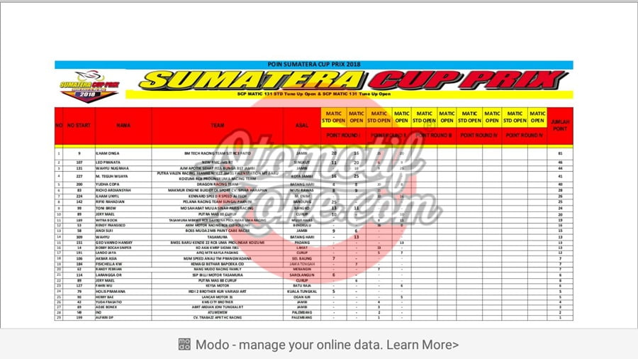 Dan di posisi ketiga mereka berdua harus berhati hati. Ada nama Wahyu Nugraha yang notabennya adalah jawara nasional Region Neraka yang juga main dikelas Matic. Wahyu juga yang berhasil mengalahkan Ilham Onga di salah satu kelas. Wahyu berada di posisi ketiga dengan total point 44.