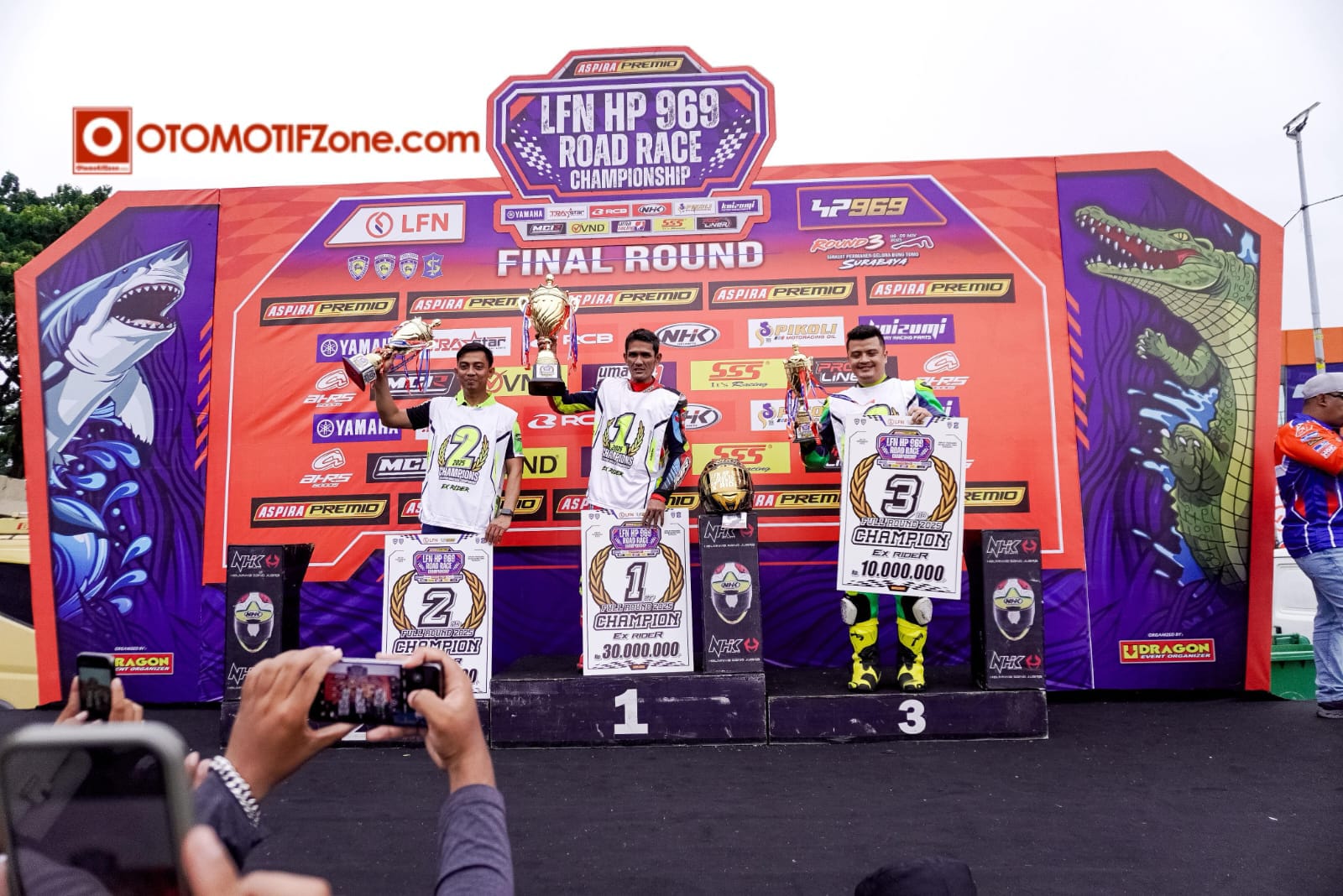 OtomotifZone.com – Surabaya. Pebalap asal Tasikmalaya, Jawa Barat, Irfan Chupenk menutup musim balap LFN HP969 Road Race Championship 2025 dengan status mentereng sebagai Juara Umum Ex Rider. Meski hasil di putaran terakhir tidak sesuai harapan, perolehan poin Chupenk sudah cukup aman untuk mengunci gelar juara.