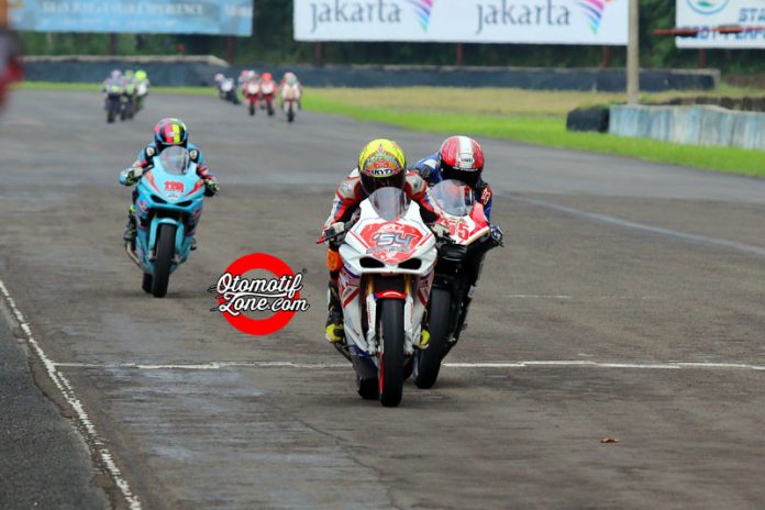 Otomotifzone.com – Sentul. Pembalap Astra Honda Racing Team Jakarta, Sudarmono berhasil juara di race 1 Kejurnas Sport 250 gelaran Indospeed Race Series 2017 seri 6 berlangsung di sirkuit Internasional Sentul, Bogor, Sabtu (9/12). Sudarmono sempat pesimis di awal jalanya race karena memang cuaca berubah drastis namun sungguh beruntung hujan tidak jadi turun.