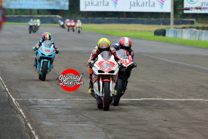 Persaingan memperebutkan posisi pertama tak sampai disitu karena memang Galang Hendra berusaha keras menekan Momon panggilan akrab Sudarmono bahkan saat keluar tikungan terakhir menjelang finish Galang Hendra melakukan aksi slip streaming namun kuatnya tunggangan dari Sudarmono membuat Galang harus puas di posisi kedua.