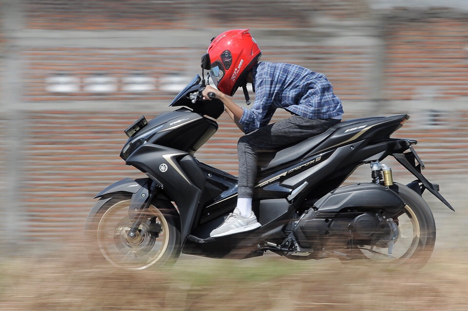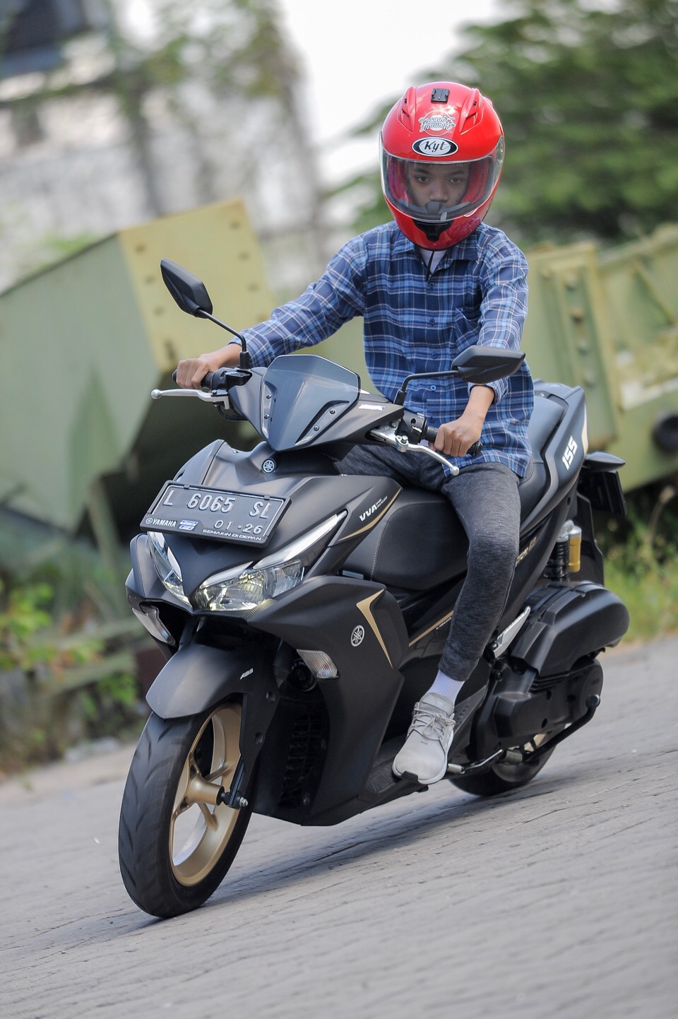 “Untuk handling, Aerox enak banget. Lincah buat kemacetan kota dan sok bekernya empuk meredam getaran saat melibas jalanan keriting atau berlubang. Yang paling saya suka tenaganya powerfull, pelintir gas di rpm berapapun tenaganya terus ngisi,” papar Abi.
