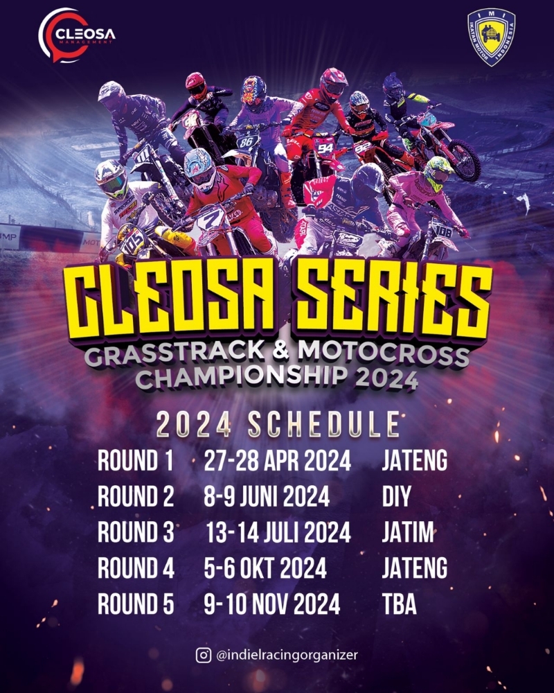 Cleosa Series kembali membuktikan diri sebagai penyelenggara event yang dinanti-nanti, memberikan panggung spektakuler bagi para pembalap untuk bersaing dan mengukir prestasi di dunia Grasstrack dan Motocross Tanah Air. Berikut rilisan jadwal sementara.