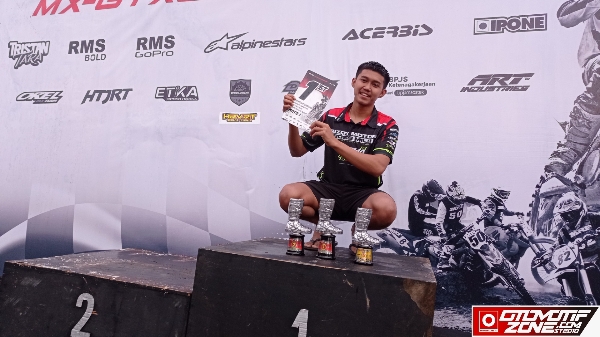 OtomotifZone.com-Jogja. Seri perdana Point Plus Indonation MX GTX sirkuit Tambakrejo, Tempel, Sleman 21-22 Mei 2022 untuk kelas Senior berhasil di raih Lantian Juan bersama team Boss Mild. Dalam balapan tersebut walau tak menemui rival keras macam event yang sudah-sudah bukan berarti dia lolos di semua kelas. Usaha di dukung hoki Lantian berhasil menitik point awal yang langsung di jadikan Juara Umum seri dengan hadiah besar. 6jt rupiah di kantongi.